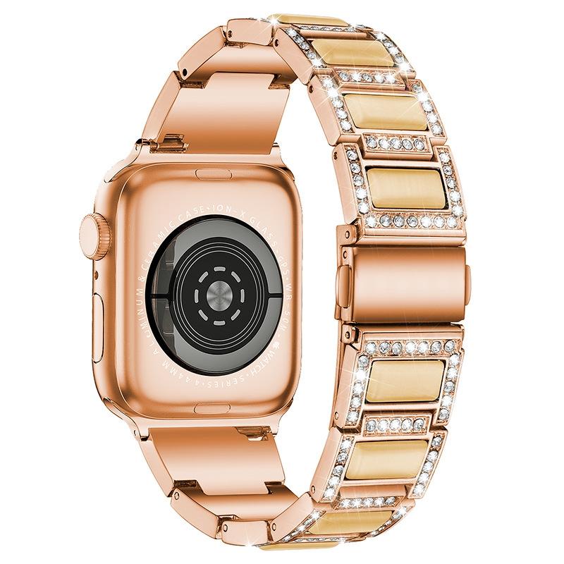 Λουράκι ρολογιού με τρεις χάντρες Διαμάντι + Πολύτιμους Λίθους για Apple Watch Ultra 49mm & Watch Ultra 2 49mm / Series 9 & 8 & 7 45mm / SE 3 & SE 2 & 6 & SE & 5 & 4 44mm / 3 & 2 & 1 42mm (Ροζέ χρυσό λευκό)
