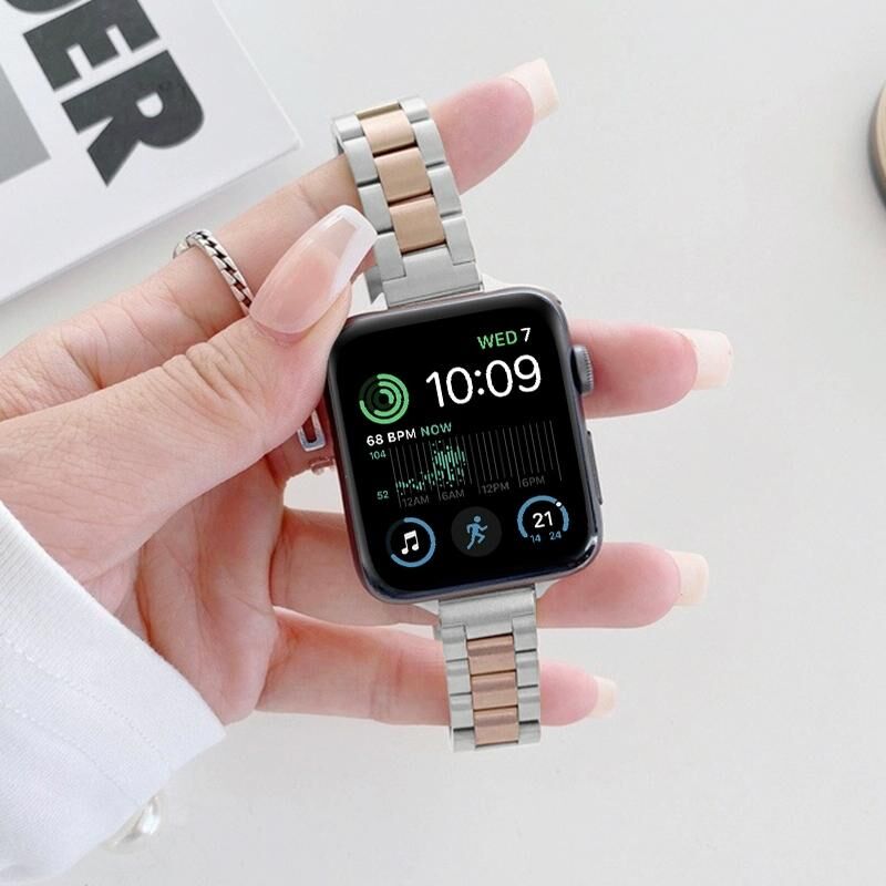 Λουράκι για Apple Watch από ατσάλι με τρία σφαιρίδια για Series 9&8&7 41mm / SE 3&SE 2&6&SE&5&4 40mm / 3&2&1 38mm (Ροζ)
