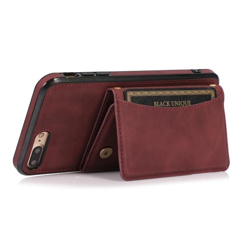 Τριπλή Δερμάτινη Θήκη Τηλεφώνου με Θήκη Καρτών & Πορτοφόλι & Στήριξη για iPhone 8 Plus & 7 Plus (Κόκκινο Κρασί)