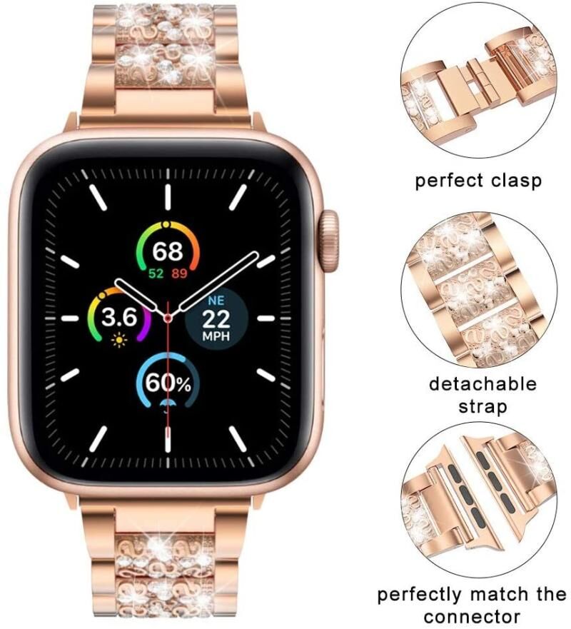 Three Stainless Steel Straps with Rhinestones For Series 7 45mm / 6 & SE & 5 & 4 44mm / 3 & 2 & 1 42mm(Black)