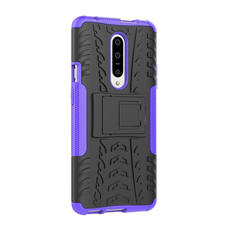 Tire Texture TPU + PC Shockproof τηλέφωνο υπόθεση για OnePlus 7, με κάτοχο (μωβ)