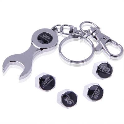 Tire Valve Caps 4 pcs with Wrench Keychain(Silver)