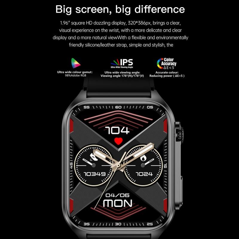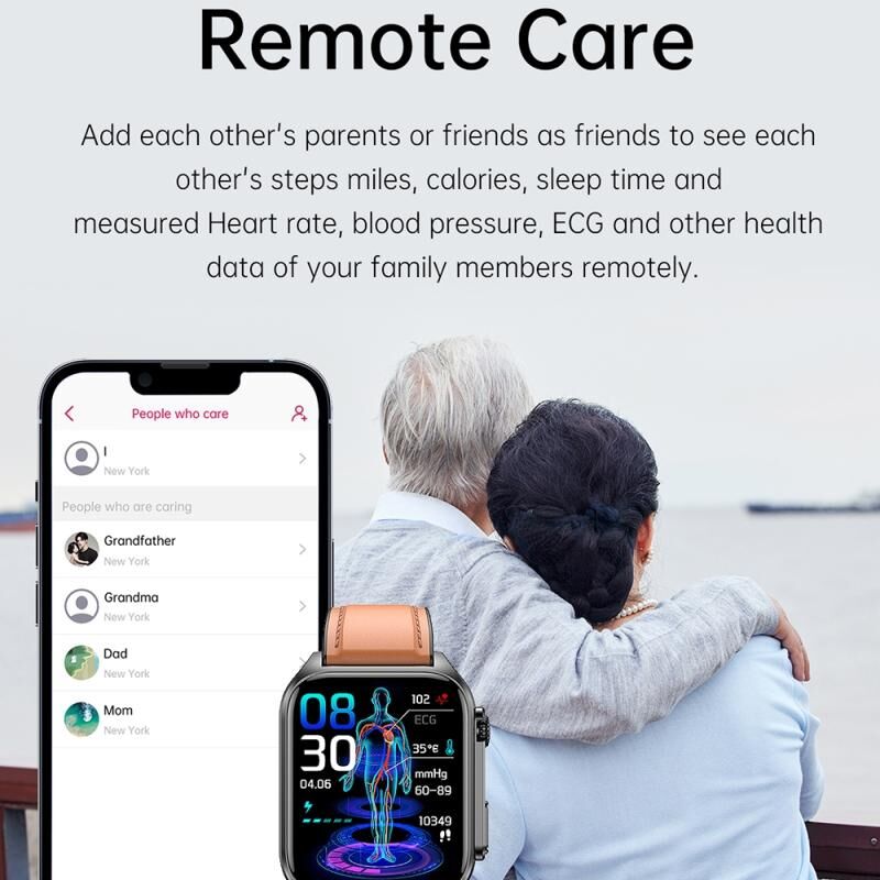 11. Support Bluetooth calls, ECG monitoring, body temperature monitoring, blood sugar monitoring, health monitoring: 24-hour continuous dynamic heart rate monitoring (with living body detection function), blood pressure, accurate independent blood oxygen, real-time pressure monitoring, sleep monitoring, remote care for relatives and friends, reject call