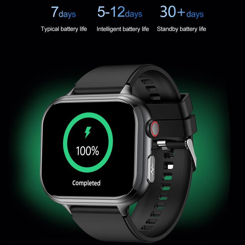 TK17 Έξυπνο ρολόι με οριζόντια οθόνη 1,91 ιντσών και λουράκι σιλικόνης, υποστηρίζει ΗΚΓ (Ηλεκτροκαρδιογράφημα) (Μαύρο)