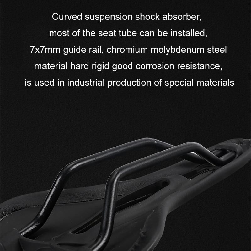 4. Curved suspension shock absorber, can be installed on most seat tubes, 7x7mm guide rail, chromium-molybdenum steel material is hard, rigid and corrosion-resistant. It is a special material used in industrial production.
