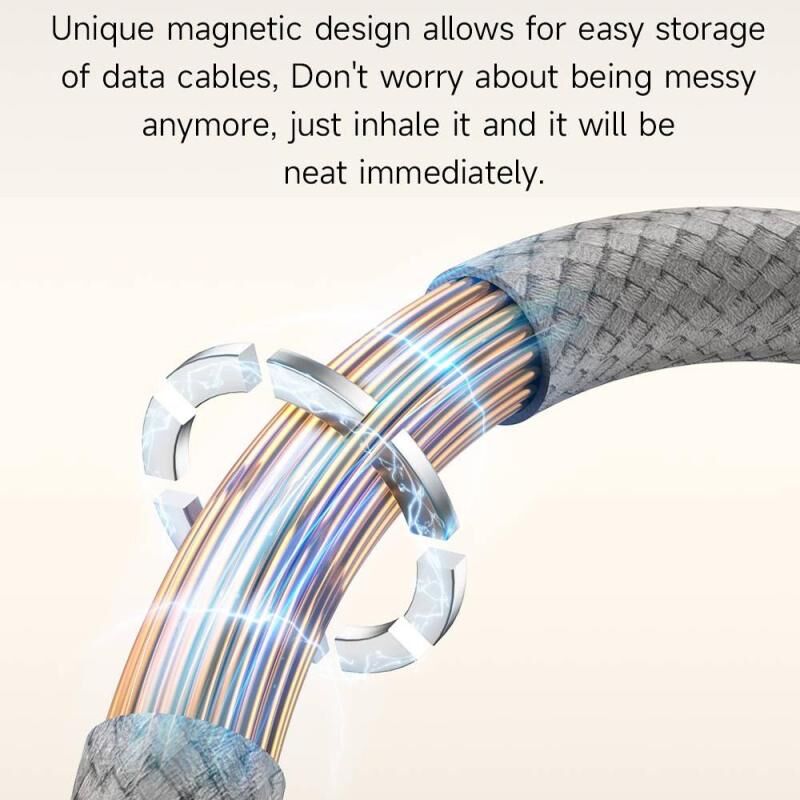 5. Magnetic cable design, automatically rolls up for storage, no mess, no tangling.