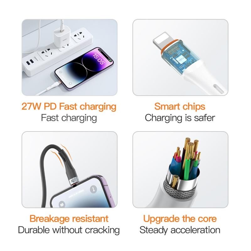Καλώδιο δεδομένων TOTU CB-2, USB-C / Type-C σε 8 ακίδες, κράμα αλουμινίου με αίσθηση δέρματος, μήκος: 1μ (Λευκό) (TOTUDESIGN)