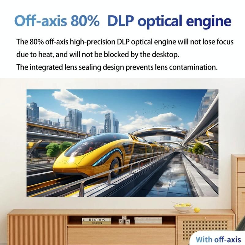 3. 80% εκτός άξονα μηχανή οπτικής DLP υψηλής ακρίβειας, δεν θα χάσει εστίαση από θερμότητα, δεν θα μπλοκάρει το φως από την επιφάνεια εργασίας