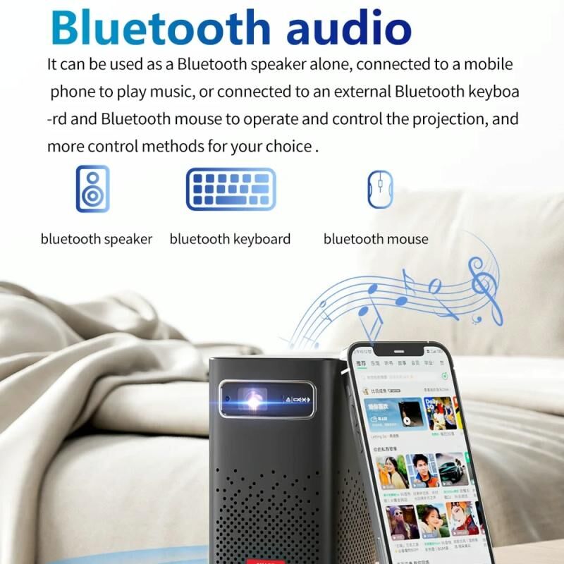 10. Μπορεί να χρησιμοποιηθεί ως αυτόνομο στερεοφωνικό Bluetooth, συνδεδεμένο στο τηλέφωνο για αναπαραγωγή μουσικής, μπορεί επίσης να συνδεθεί με πληκτρολόγιο Bluetooth και ποντίκι Bluetooth για λειτουργία και έλεγχο της προβολής