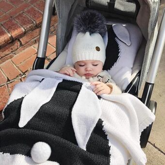 Rabbit Pattern Stereoscopic Ears Baby Knitted Blanket(Black White)