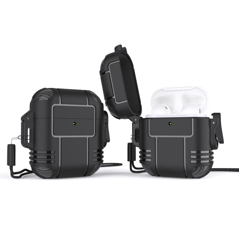 Θήκη Προστασίας Ακουστικών TPU Anti-full με Λουρί για AirPods 1 / 2 (Μαύρο)