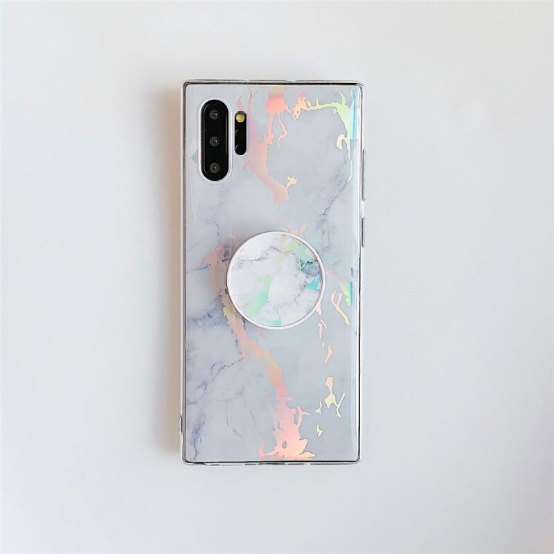 Θήκη προστασίας κινητού τηλεφώνου TPU Γυαλιστερή Λέιζερ Μάρμαρο Πολύχρωμη με Αναδιπλούμενη Βάση για Galaxy Note10+ (Μαύρο)