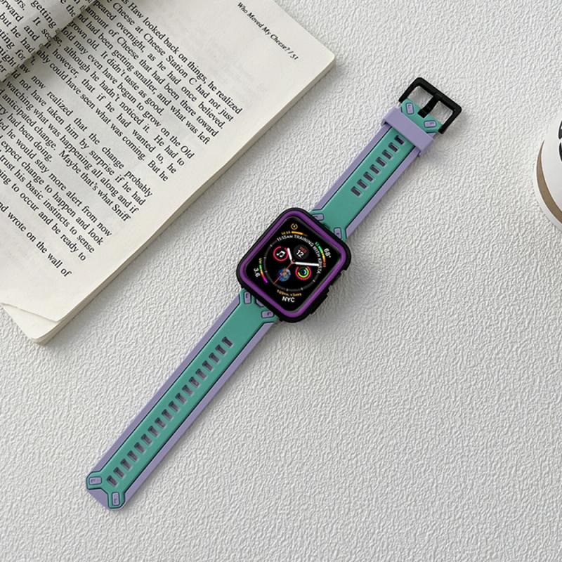 Λουράκι ρολογιού TPU για Apple Watch Series 9&8&7 41mm / SE 3&SE 2&6&SE&5&4 40mm / 3&2&1 38mm (Μωβ μέντα πράσινο)