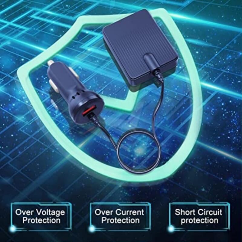 5.Equipped with a 2m long cord to offer charging requirements for your family or friends in the back seats. It is the best companion for a whole family on a car journey