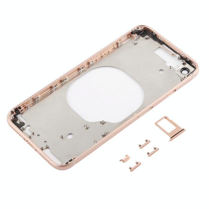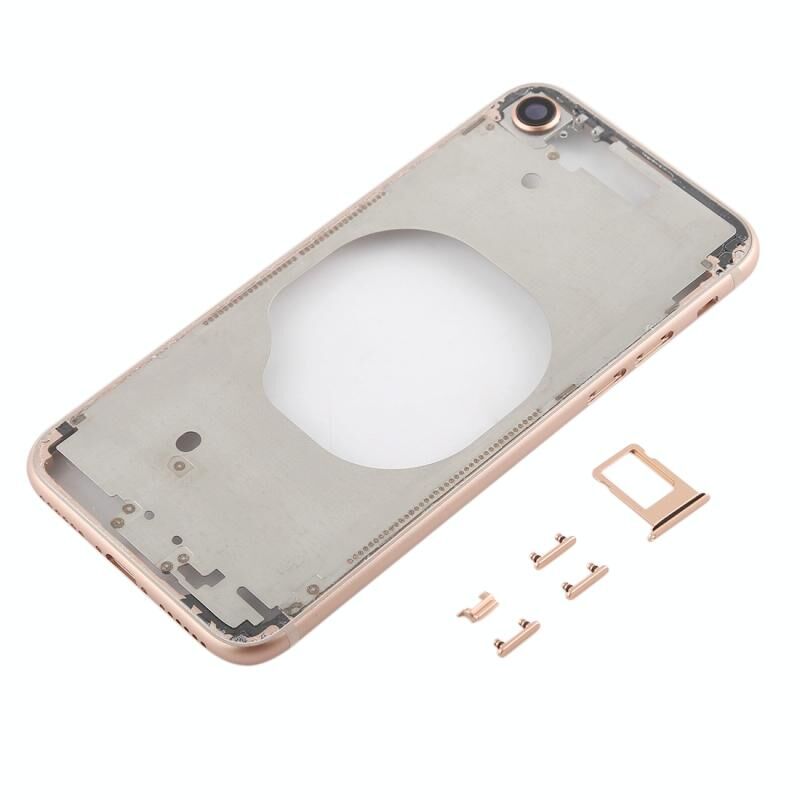 Transparent Back Cover with Camera Lens & SIM Card Tray & Side Keys for iPhone 8 (Gold)