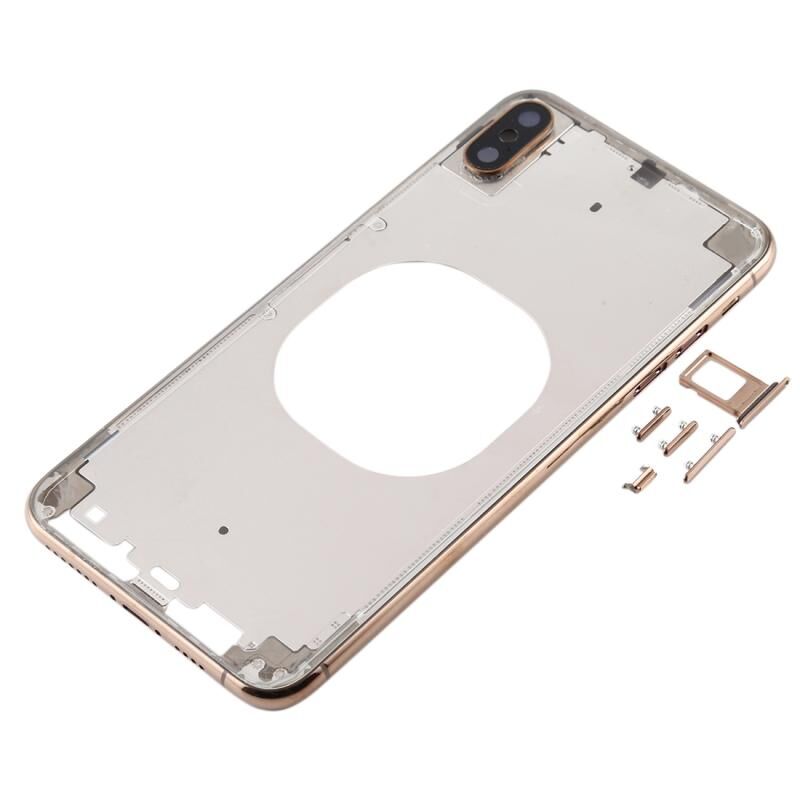 Transparent Back Cover with Camera Lens & SIM Card Tray & Side Keys for iPhone XS(Gold)