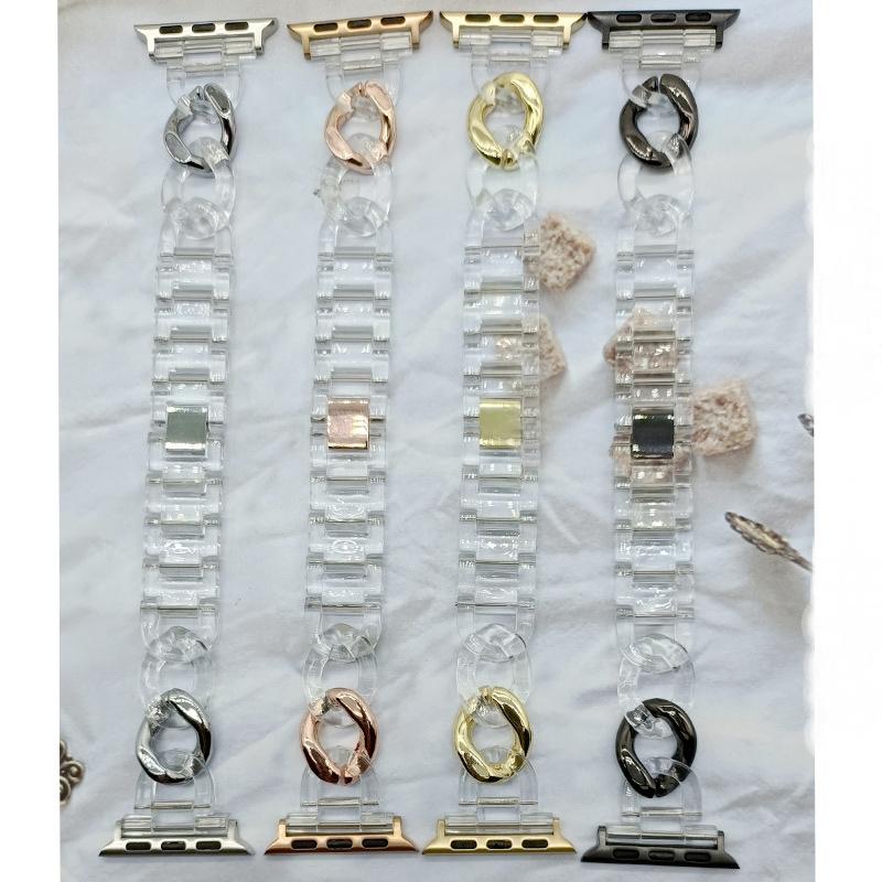 Διάφανο Δερμάτινο Λουρί για Apple Watch Series 9&8&7 41mm / SE 3&SE 2&6&SE&5&4 40mm / 3&2&1 38mm (Μαύρο)