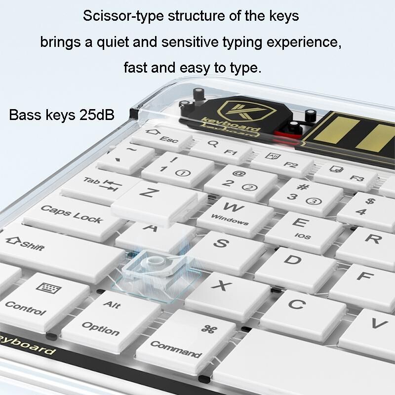 3. Key scissor structure, bring quiet and sensitive input experience, 25dB bass keys, fast and easy typing