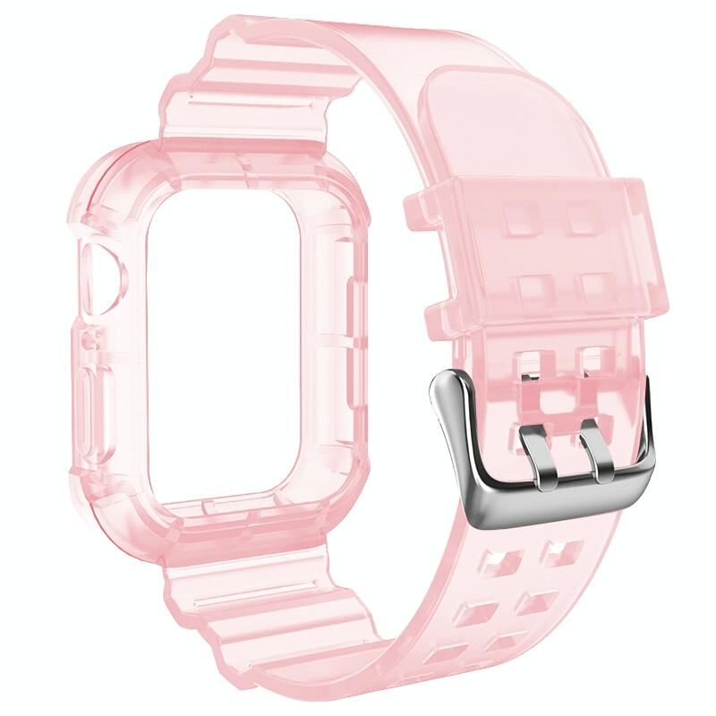 Transparent Watch Band For Apple Watch Series 8&7 45mm / SE 2&6&SE&5&4 44mm / 3&2&1 42mm(Transparent Pink)