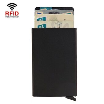 RFID Σύντομη μεταλλική θήκη κάρτας πιστωτικής κάρτας κάτοχος πορτοφόλι (Μαύρο)