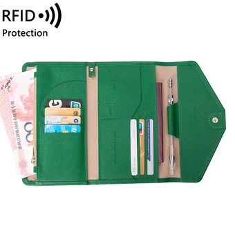 Αντιμαγνητικό RFID Μεγάλης χωρητικότητας μακρύ στυλ γνήσιο δέρμα Διαβατήριο πακέτο / Πολυλειτουργικό και πολλές υποδοχές κάρτας πακέτο κάρτας (Πράσινο)