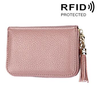 Cowhide δέρμα φερμουάρ αμιγές χρώμα οριζόντια κάρτα κάτοχος πορτοφόλι RFID μπλοκάρισμα κέρμα πορτοφόλι κάρτα τσάντα τσάντα προστατεύει υπόθεση, Μέγεθος: 11.4 * 7.4cm (ροζ)