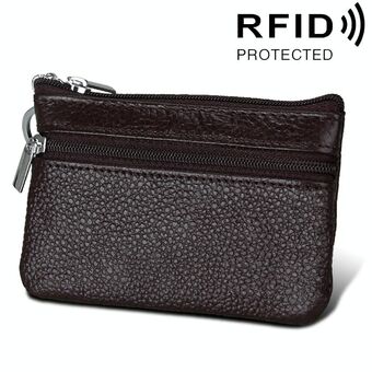 Γνήσιο δέρμα αγελάδας Crazy Horse υφή διπλή φερμουάρ σύντομο στυλ κάτοχος κάρτας πορτοφόλι RFID μπλοκάρισμα κάρτα τσάντα προστατεύει υπόθεση για τους άνδρες, Μέγεθος: 12.1 * 9.4 * 2.7cm (Καφές)