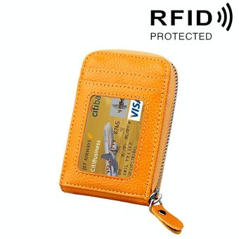 Γνήσιο δέρμα αγελάδας Αμιγές χρώμα φερμουάρ κάθετη κάρτα κάτοχος πορτοφόλι RFID μπλοκάρισμα κάρτα τσάντα προστατεύει υπόθεση με 12 υποδοχές καρτών, Μέγεθος: 11.5 * 7.5cm (πορτοκαλί)