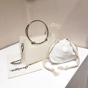 2 σε 1 PVC + καμβά μεταλλική λαβή ενιαία τσάντα ώμου κυρίες τσάντα Messenger τσάντα (χρώμα: λευκό μέγεθος: στυλ 2)
