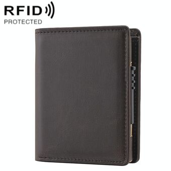 Αυτόματο ελαστικό πορτοφόλι κάρτας αντιμαγνητικό RFID αντικλοπής ρετρό θήκη καρτών καθολικό δερμάτινο μεταλλικό πορτοφόλι (Καφέ)