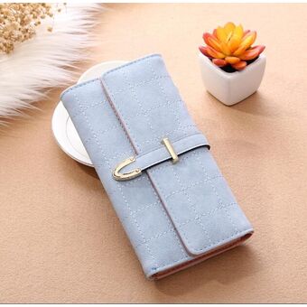 Γυναικεία τσάντα πορτοφόλι με σχέδιο καρό, δερμάτινη, μοντέρνο σχέδιο με πολυεστέρα, θήκη κινητού, μακρύ και λεπτό γυναικείο πορτοφόλι (ανοιχτό μπλε)