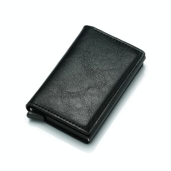 Αυτόματο ελαστικό πορτοφόλι κάρτας αντιμαγνητικό RFID αντικλοπής ρετρό θήκη καρτών καθολικό δερμάτινο μεταλλικό πορτοφόλι (Μαύρο)