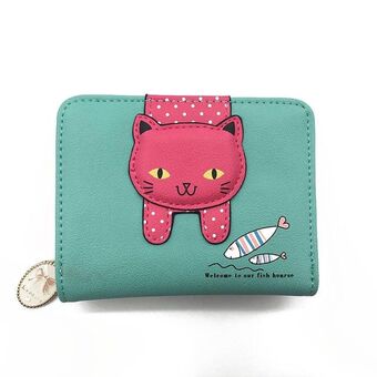 Γυναικείο Χαριτωμένο Πορτοφόλι Γάτας, Μικρό Πορτοφόλι με Φερμουάρ, Δερμάτινο Πορτοφόλι PU, Θήκη για Κέρματα και Κάρτες (Μαύρο)