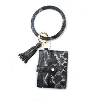 Βραχιόλι Δαχτυλίδι Δερμάτινη Θήκη Κάρτας PU, Κρεμαστό Κλειδιών, Πορτοφόλι για Κέρματα (Μαύρο)