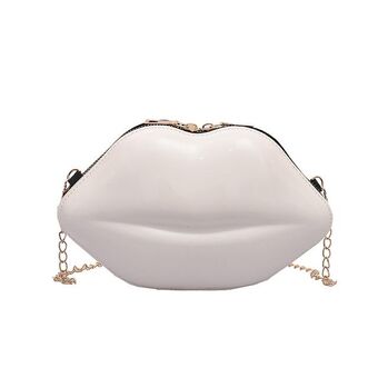 Sexy Lips Style Fashion PU Ladies Clutch Bag Chain Purse Shoulder Bag Handbag Women Crossbody Mini Messenger Bag(White)