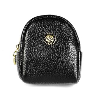 2028 Lady Portable Small Cosmetic Bag Leather Zipper Wallet Purse(Black)