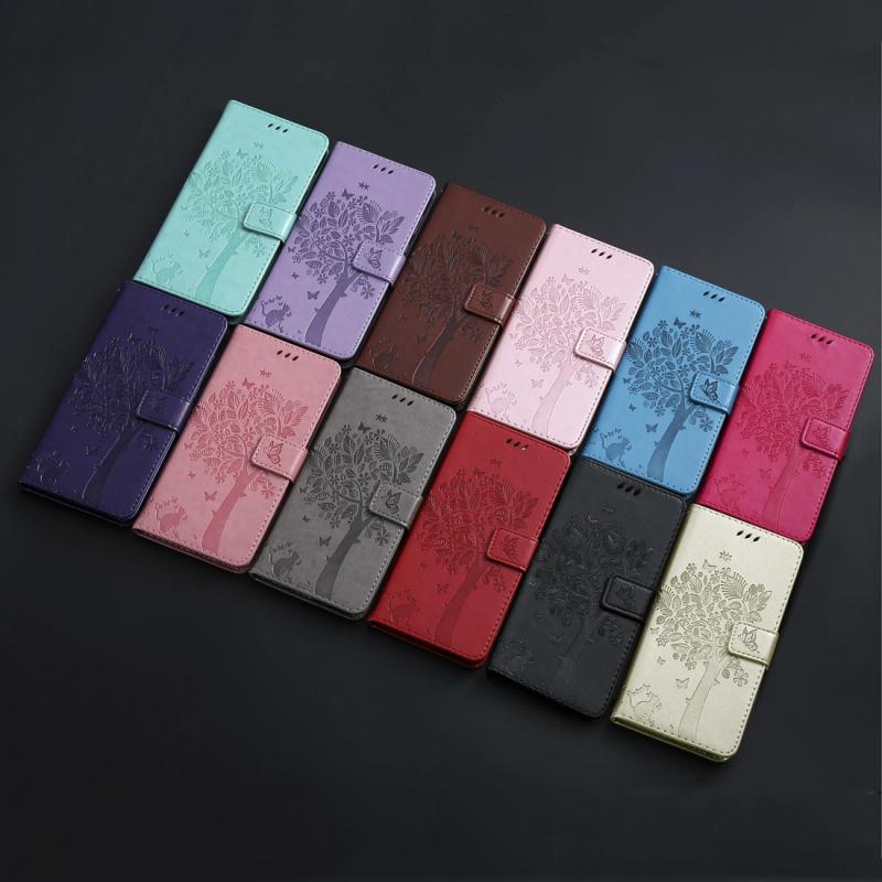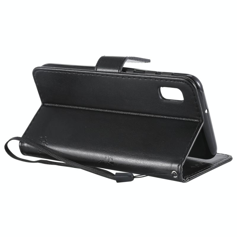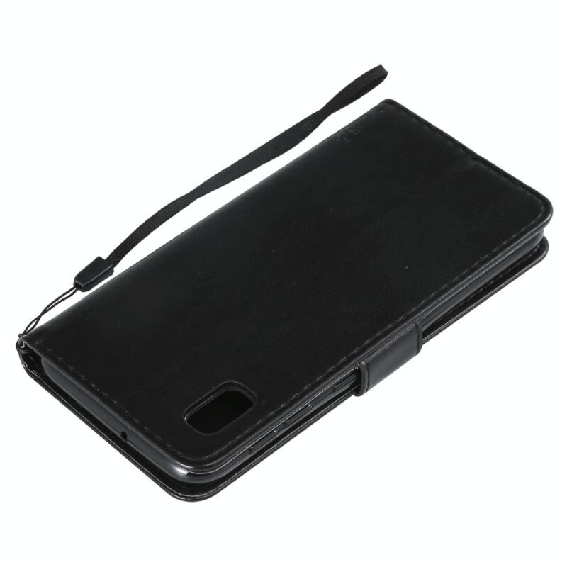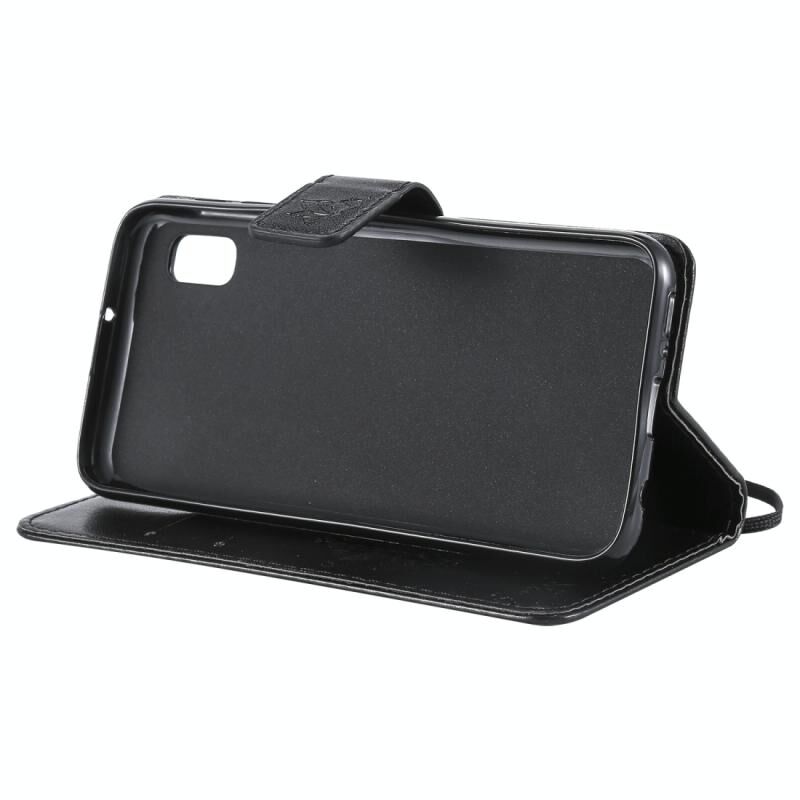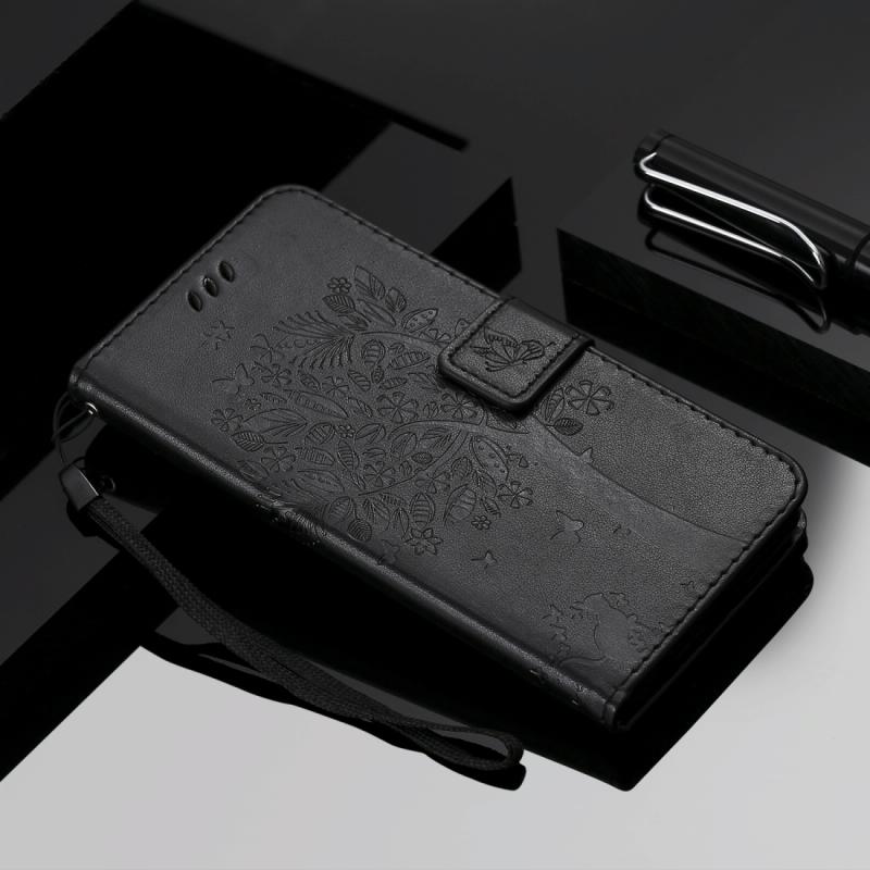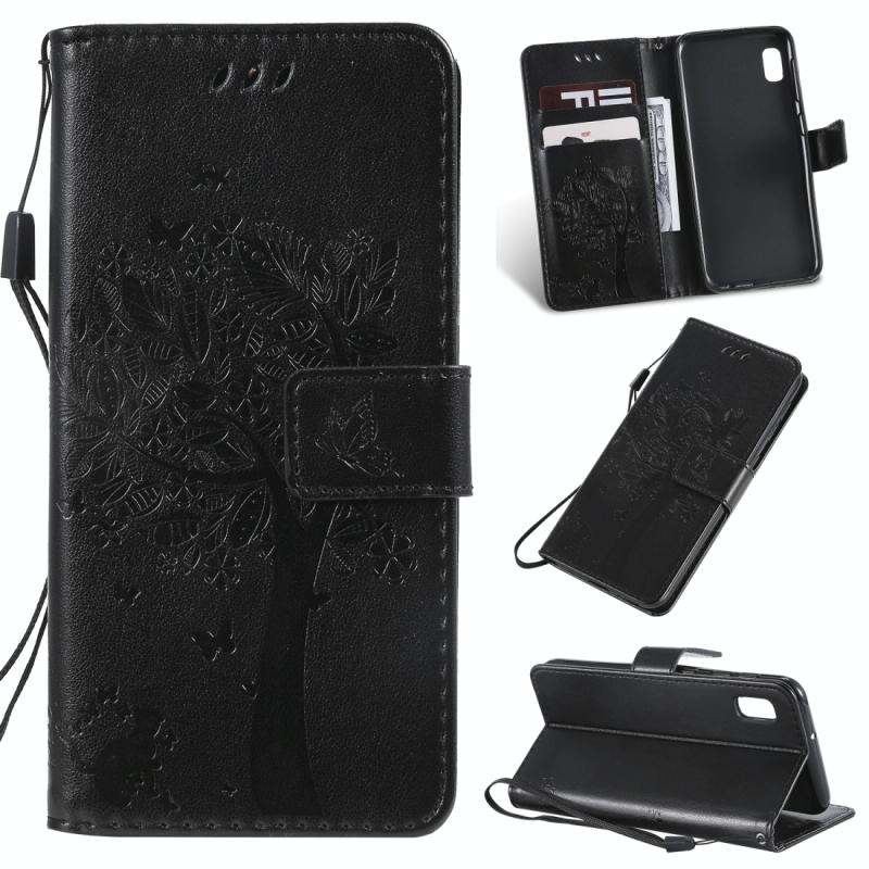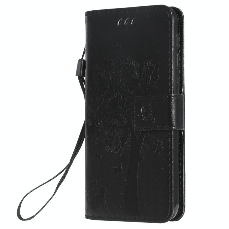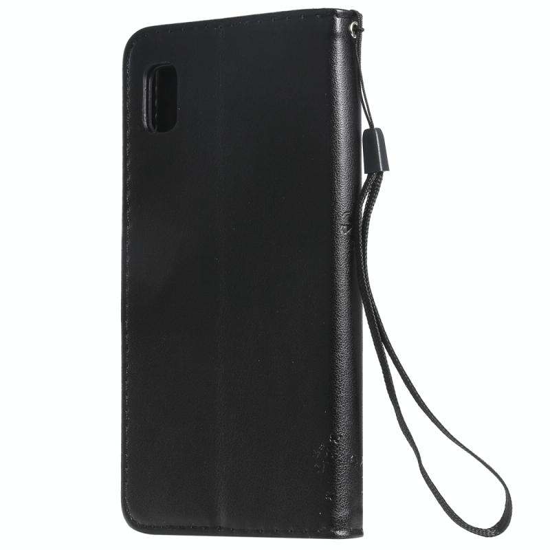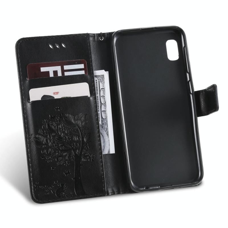 Θήκη δερμάτινη PU με σχέδιο δέντρου & γάτας, με εκτύπωση, οριζόντιο άνοιγμα, με βάση, θήκες καρτών, πορτοφόλι & λουρί για Galaxy A10e (Μαύρο)