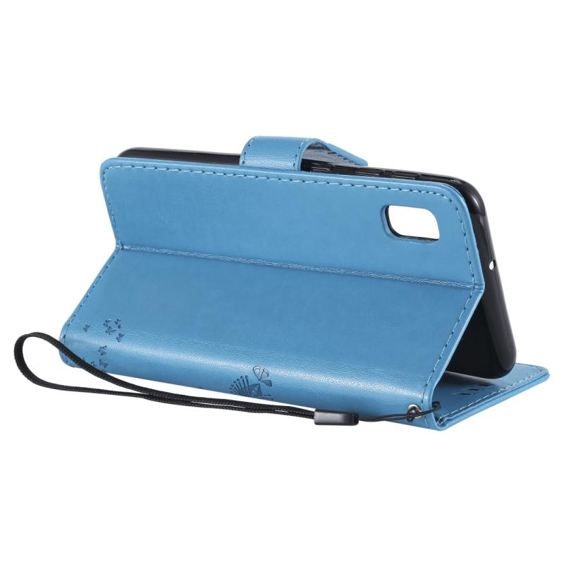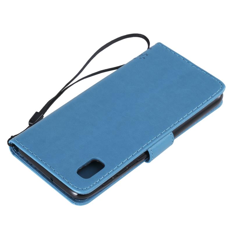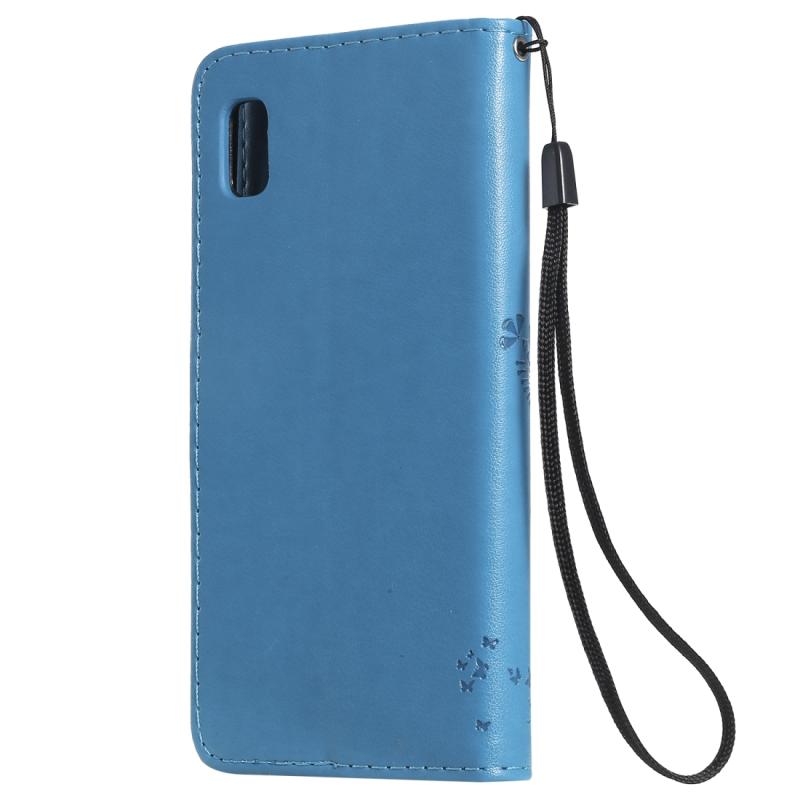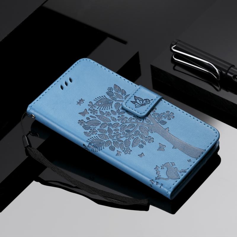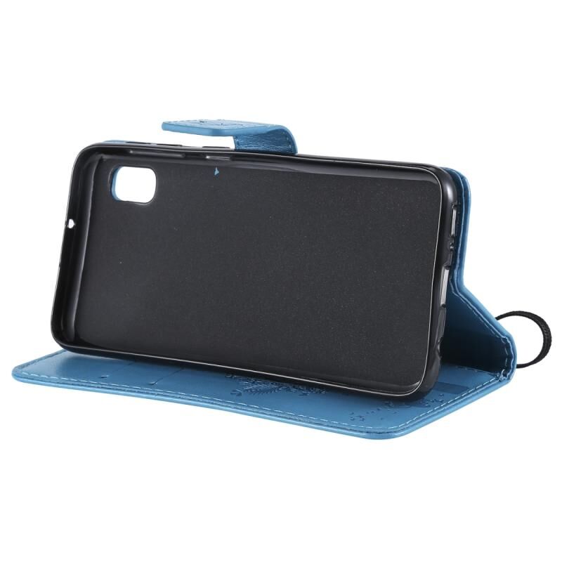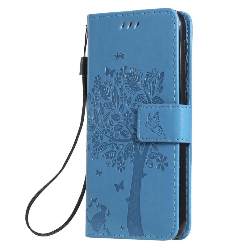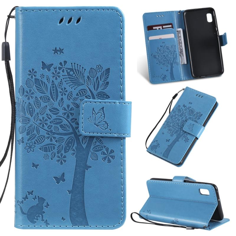 Θήκη δερμάτινη PU με σχέδιο δέντρου & γάτας, με εκτύπωση, οριζόντιο άνοιγμα, με βάση, θήκες καρτών, πορτοφόλι & λουρί για Galaxy A10e (Μπλε)