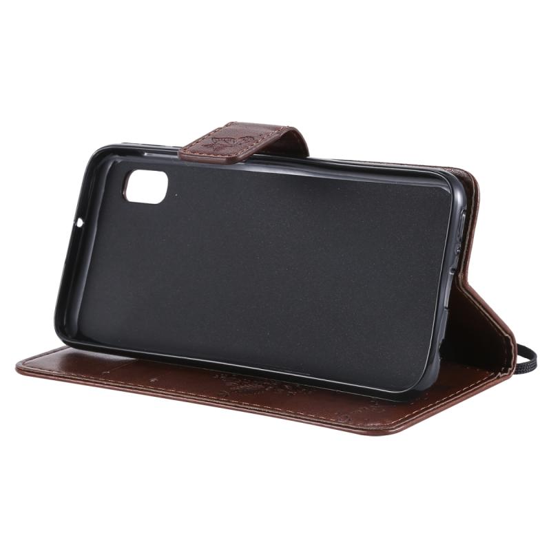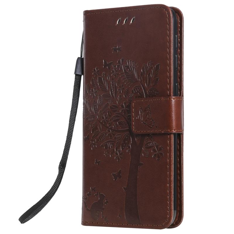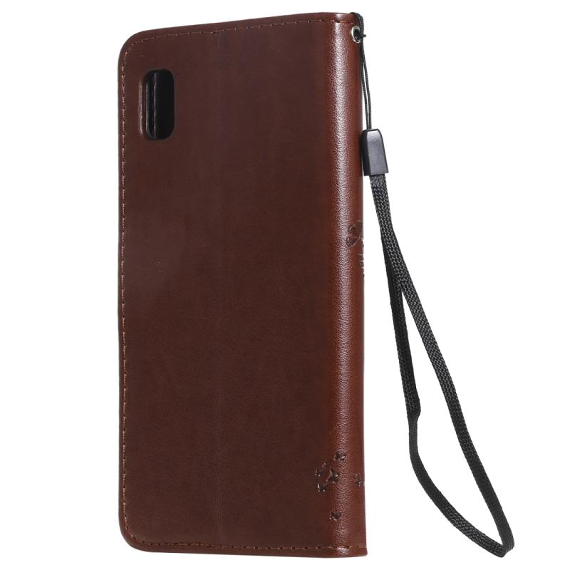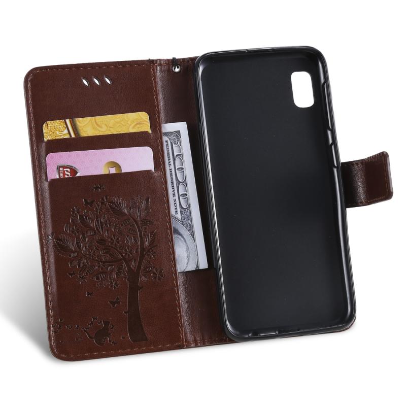 Θήκη δερμάτινη PU με σχέδιο δέντρου & γάτας, με εκτύπωση, οριζόντιο άνοιγμα, με βάση, θήκες καρτών, πορτοφόλι & λουρί για Galaxy A10e (Μωβ)