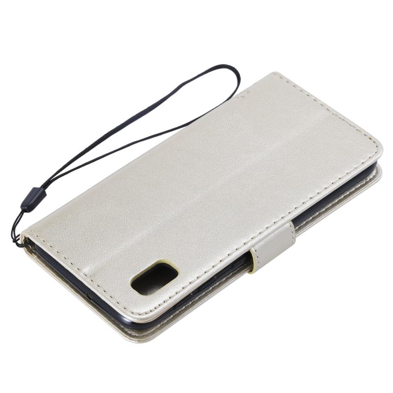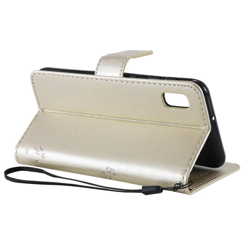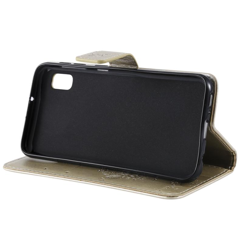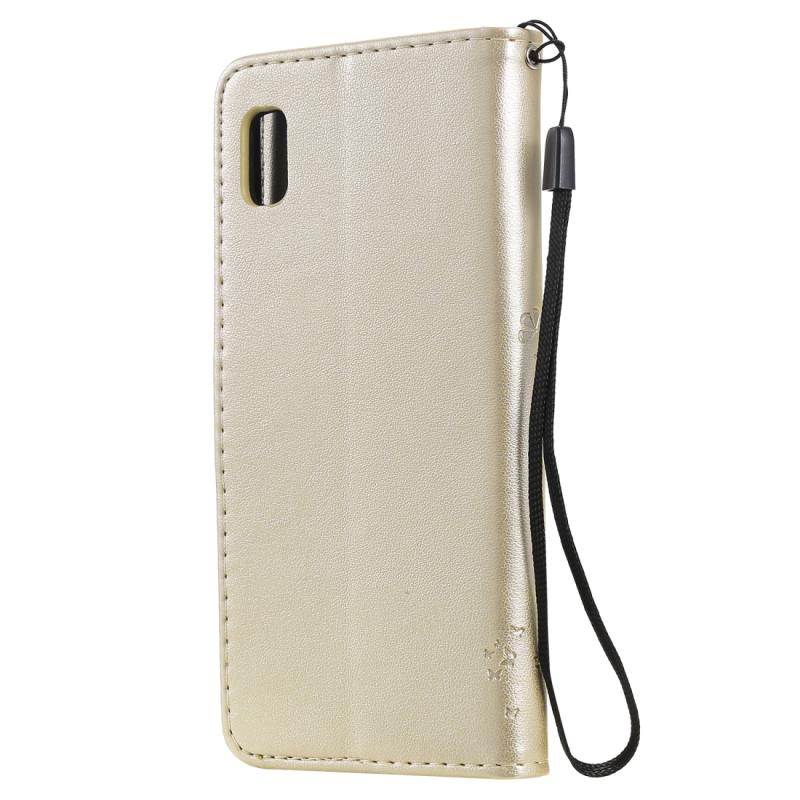Θήκη δερμάτινη PU με σχέδιο δέντρου & γάτας, με εκτύπωση, οριζόντιο άνοιγμα, με βάση, θήκες καρτών, πορτοφόλι & λουρί για Galaxy A10e (Μωβ)