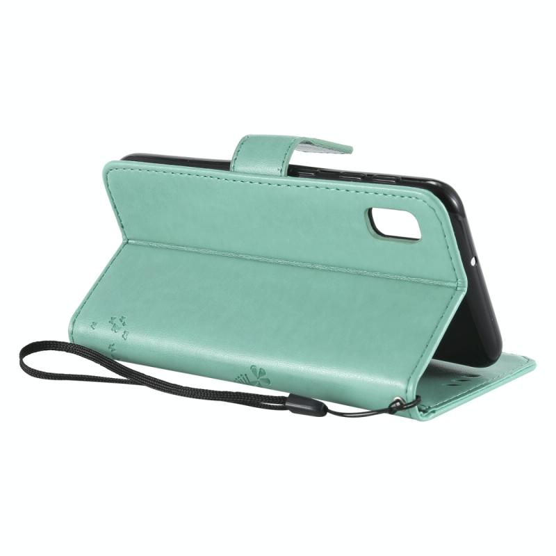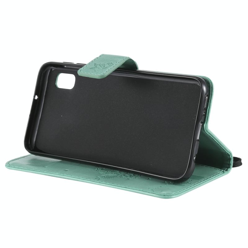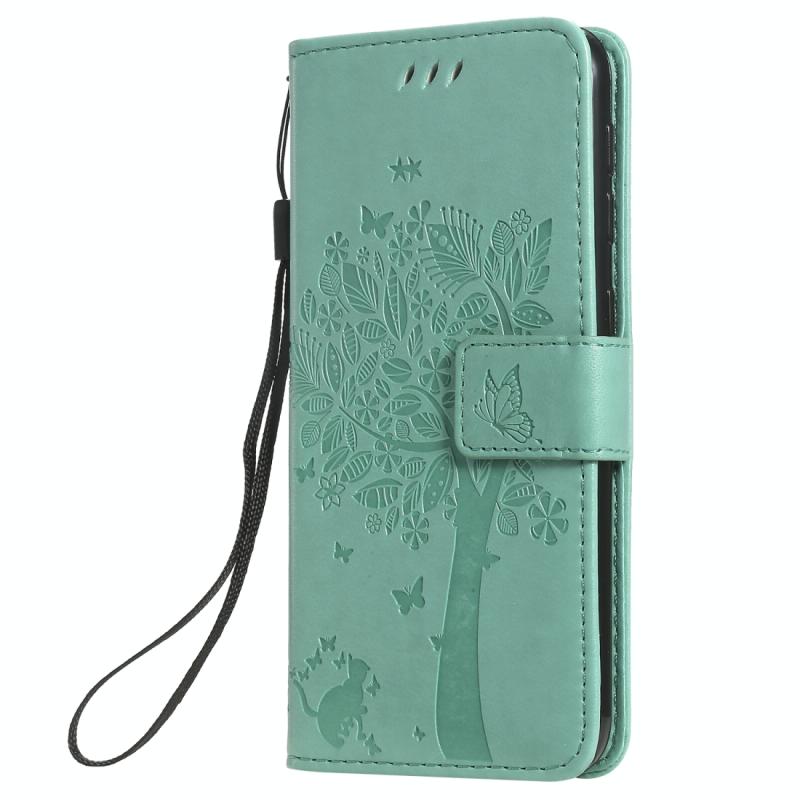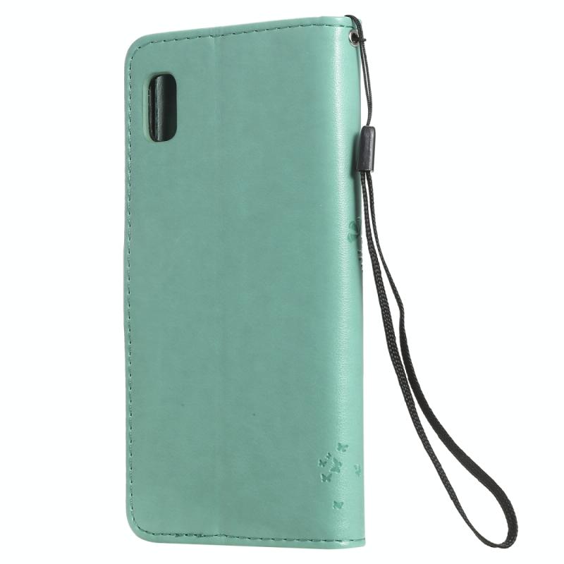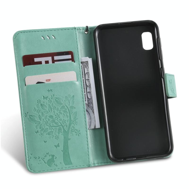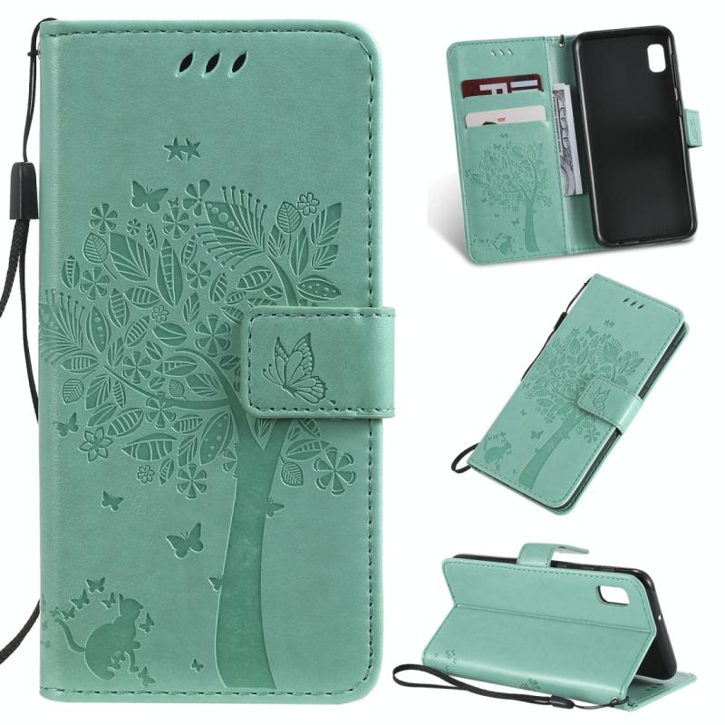 Θήκη δερμάτινη PU με σχέδιο δέντρου & γάτας, με εκτύπωση, οριζόντιο άνοιγμα, με βάση, θήκες καρτών, πορτοφόλι & λουρί για Galaxy A10e (Μωβ)