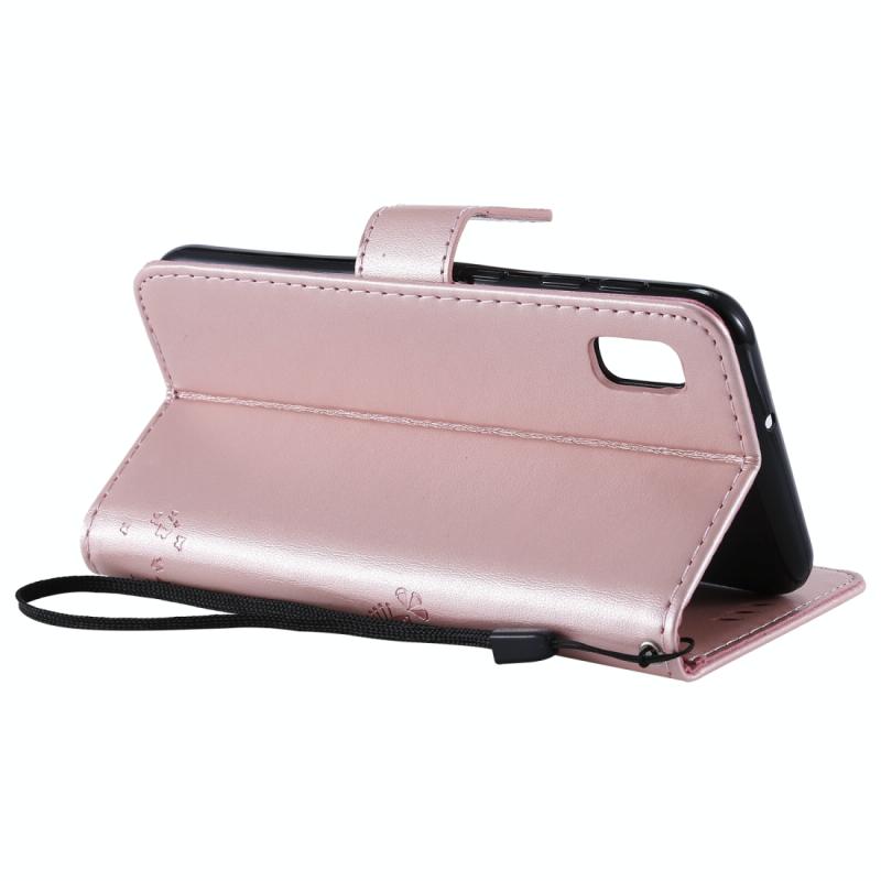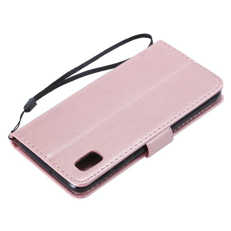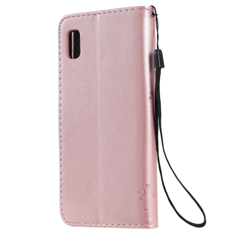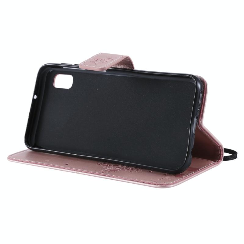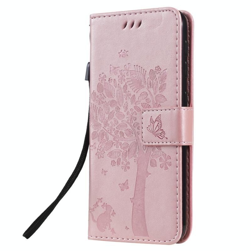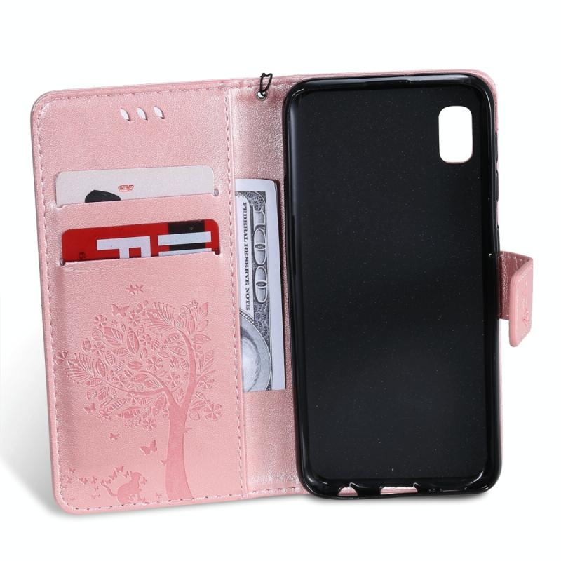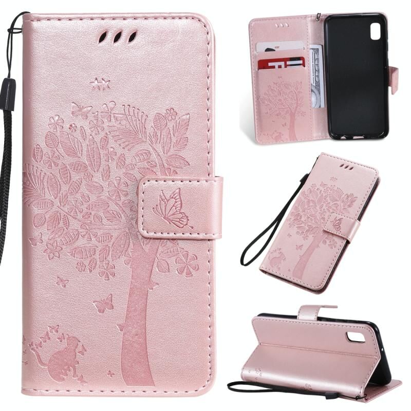 Θήκη δερμάτινη PU με σχέδιο δέντρου & γάτας, με εκτύπωση, οριζόντιο άνοιγμα, με βάση, θήκες καρτών, πορτοφόλι & λουρί για Galaxy A10e (Ροζ χρυσός)