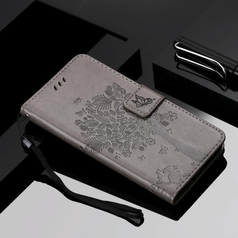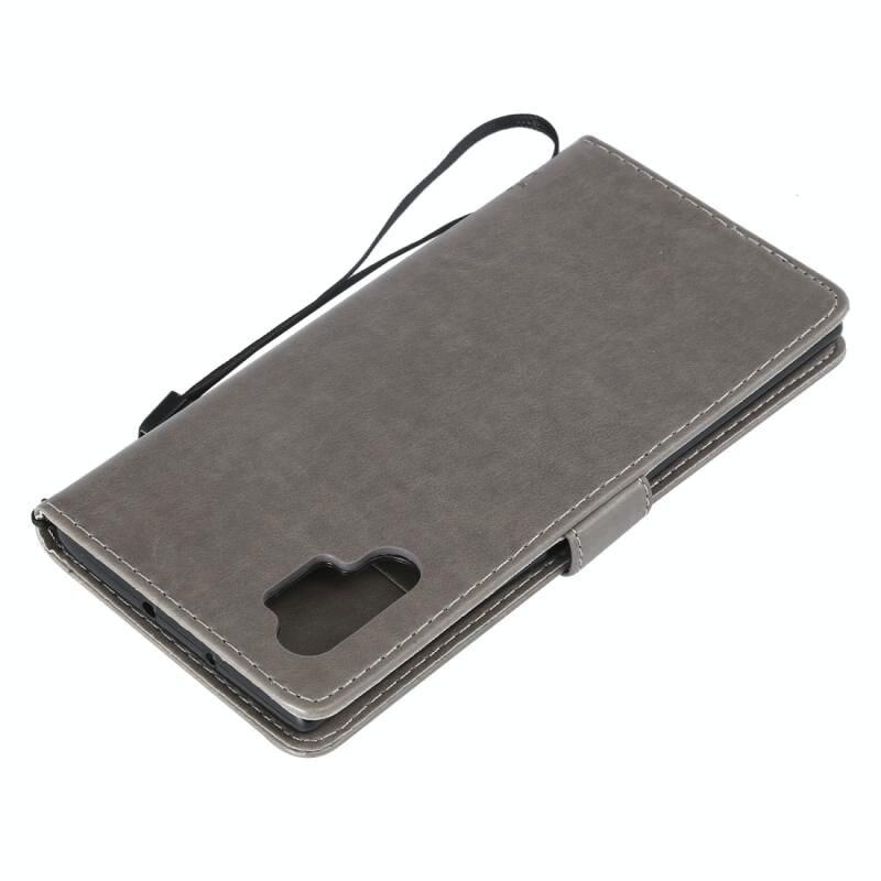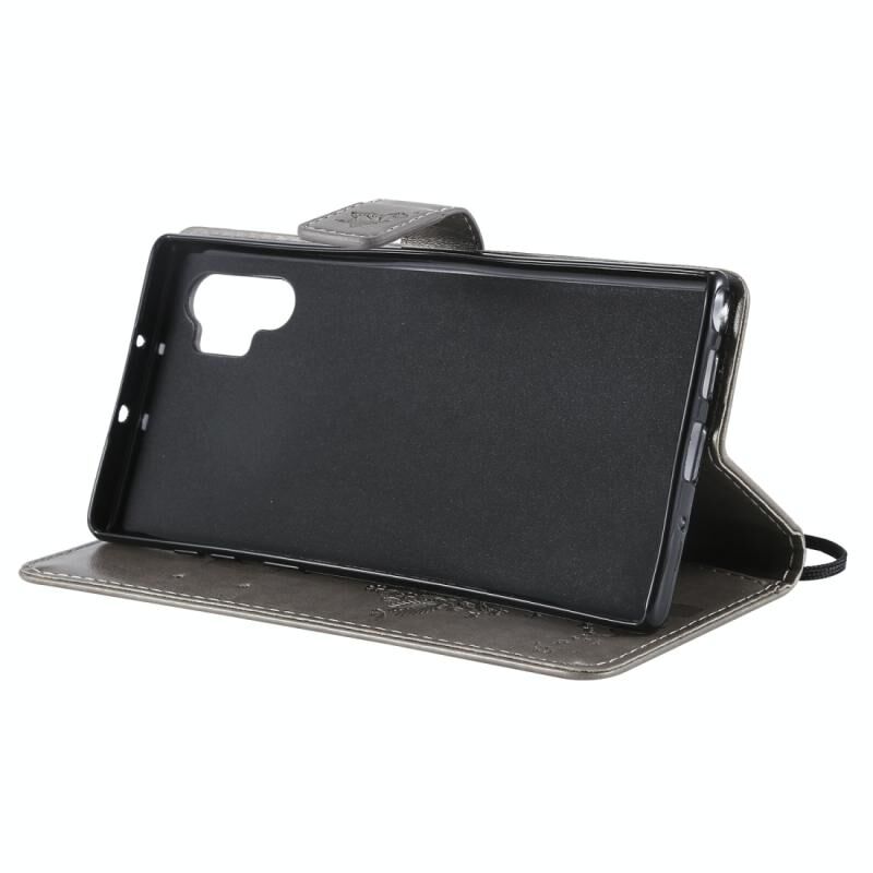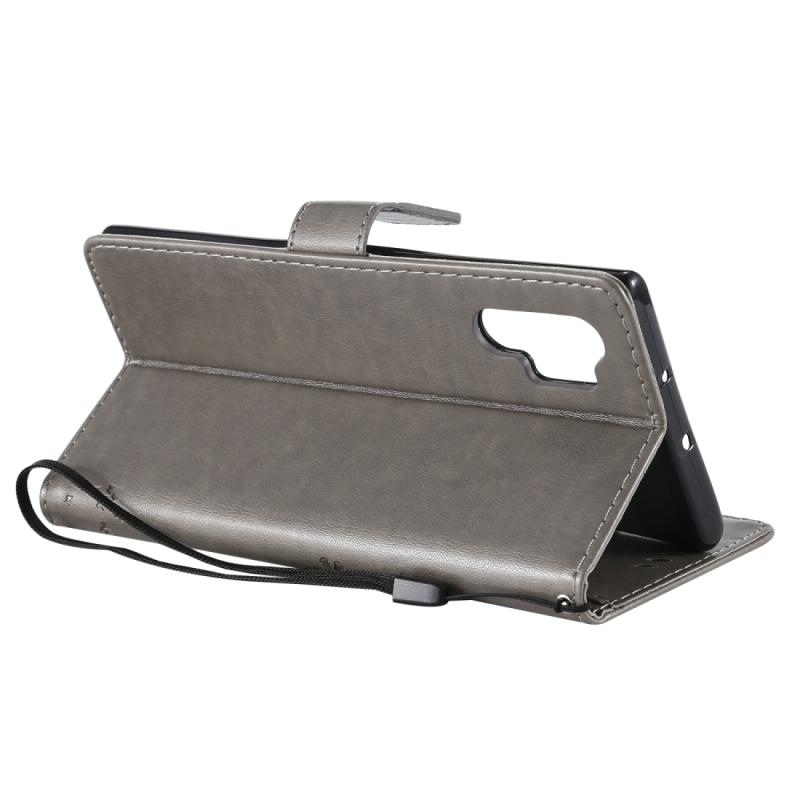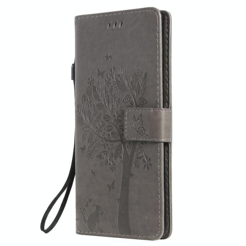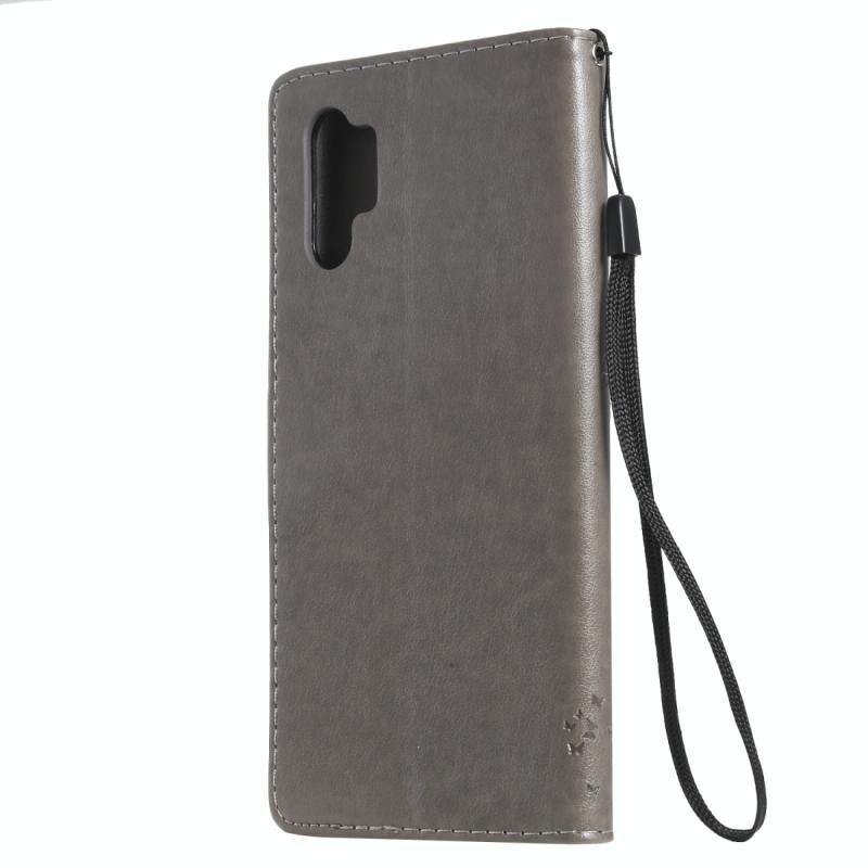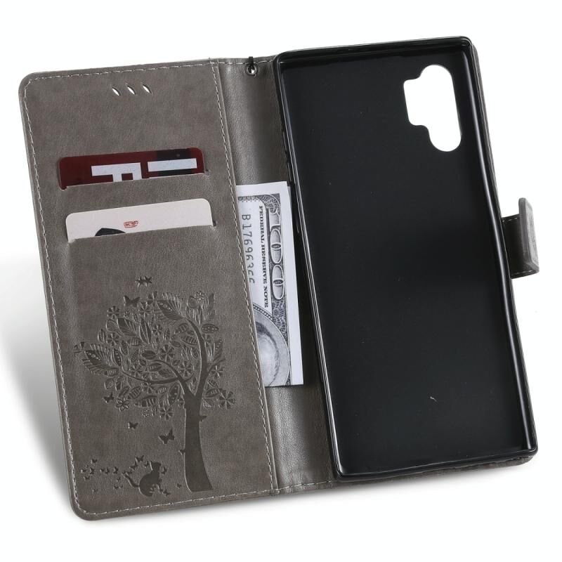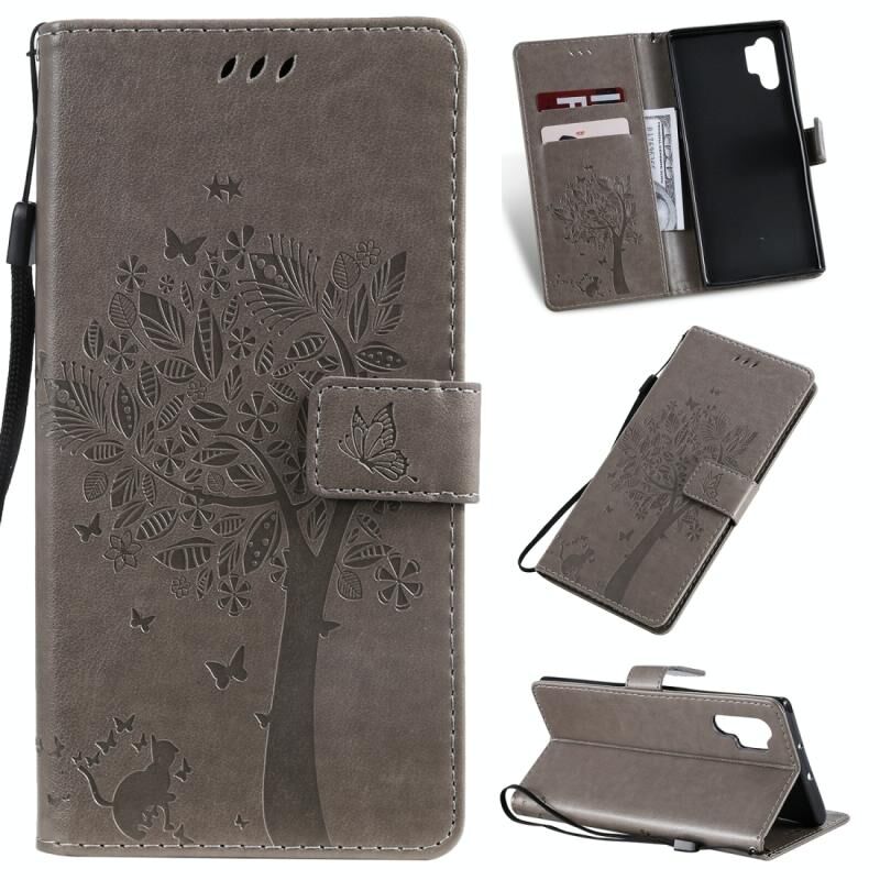 Tree & Cat Pattern Pressed Printing Horizontal Flip PU Leather Case with Holder & Card Slots & Wallet & Lanyard For Galaxy Note 10+ / 10 Pro(Grey)