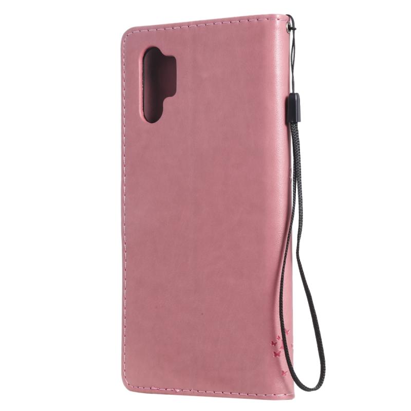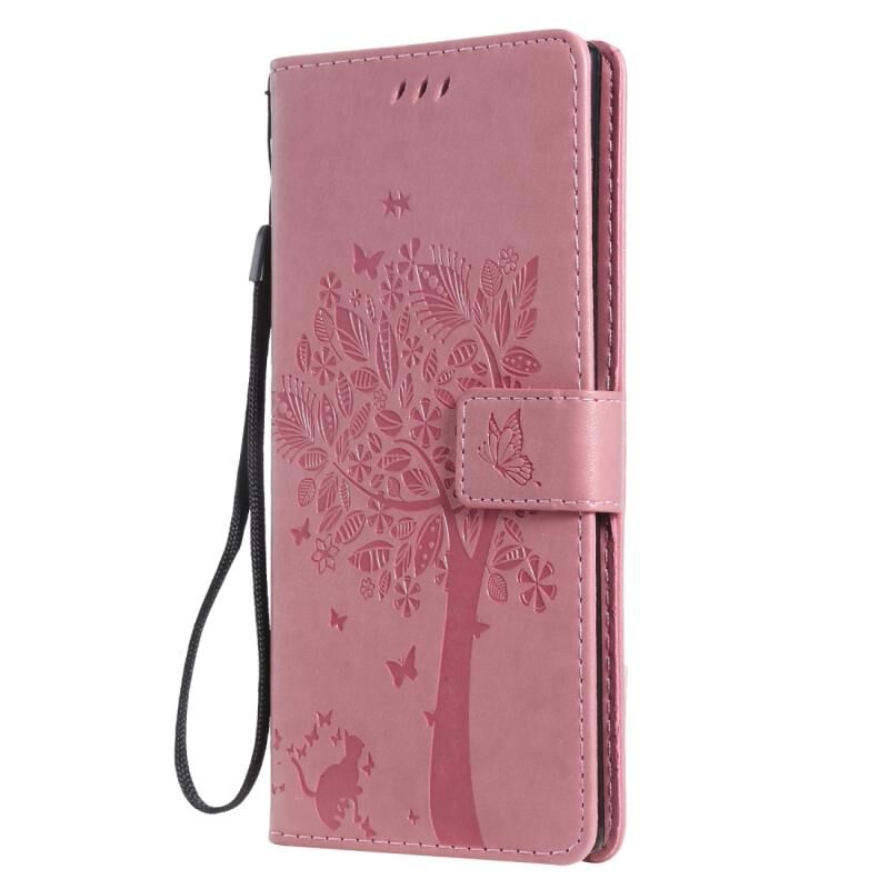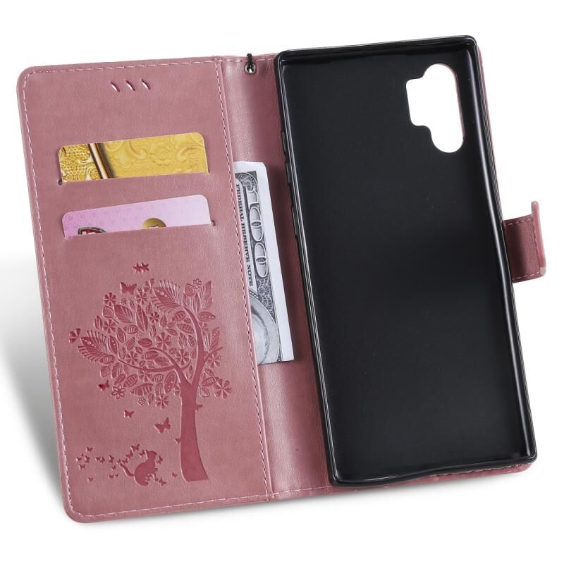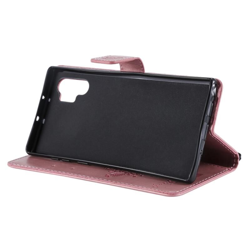 Tree & Cat Pattern Pressed Printing Horizontal Flip PU Leather Case with Holder & Card Slots & Wallet & Lanyard For Galaxy Note 10+ / 10 Pro(Pink)