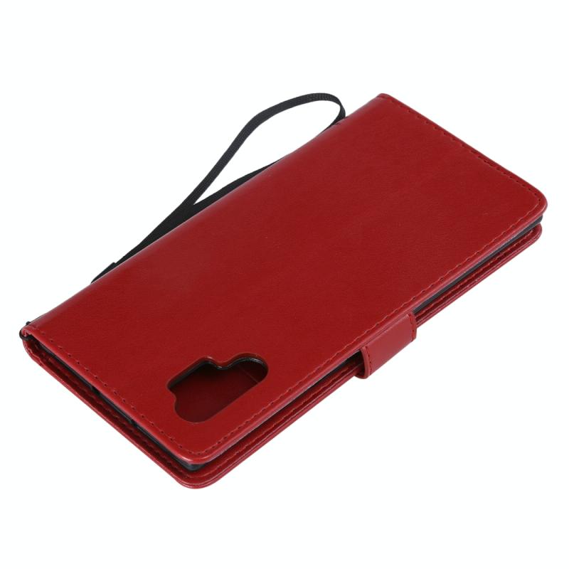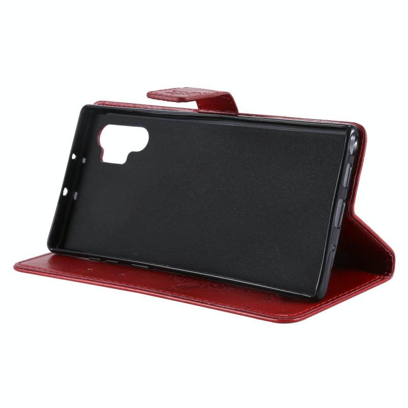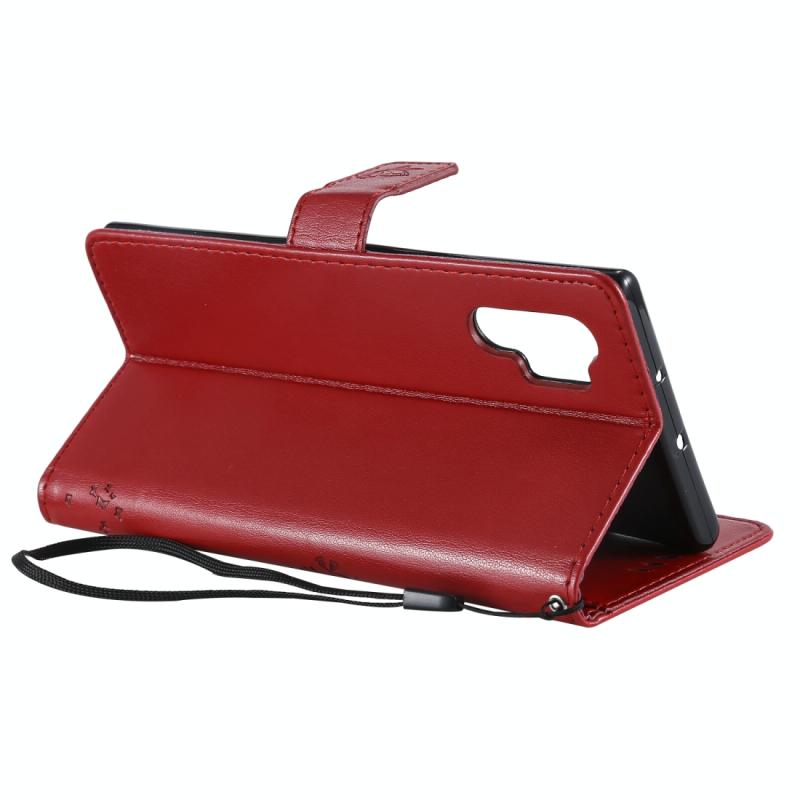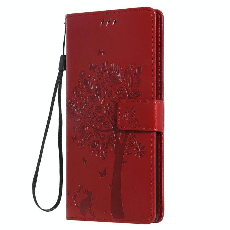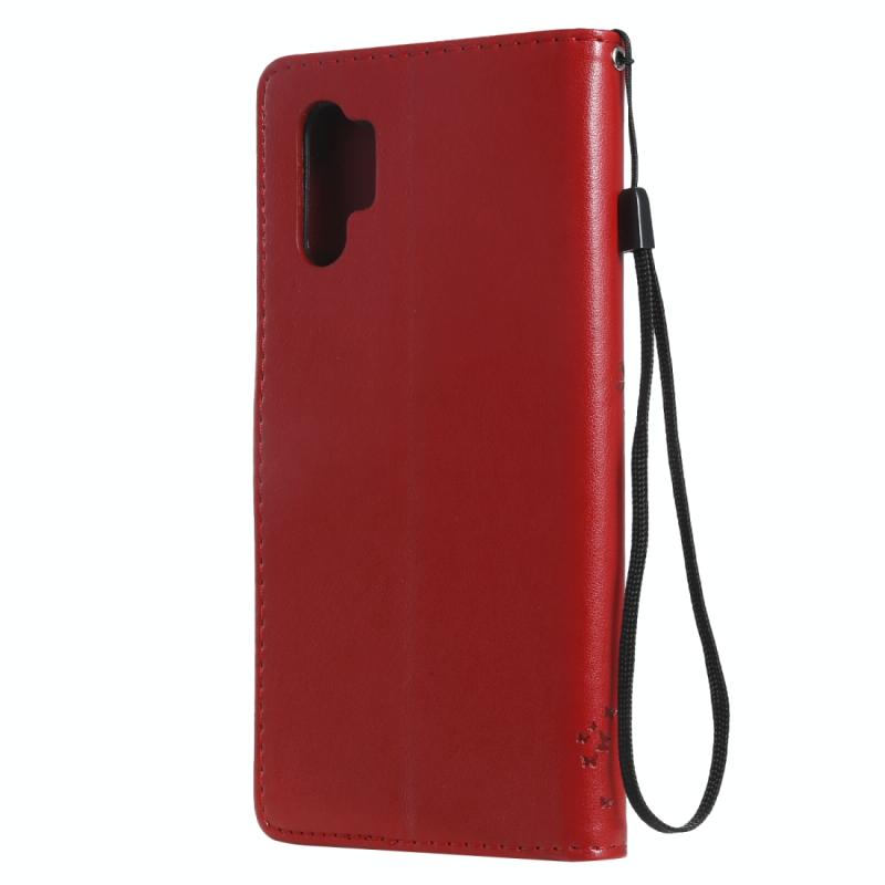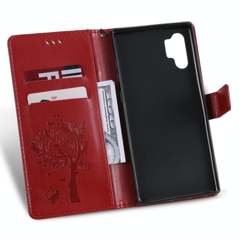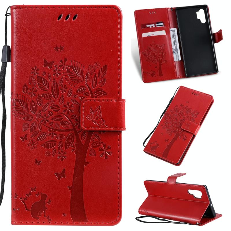 Tree & Cat Pattern Pressed Printing Horizontal Flip PU Leather Case with Holder & Card Slots & Wallet & Lanyard For Galaxy Note 10+ / 10 Pro(Red)