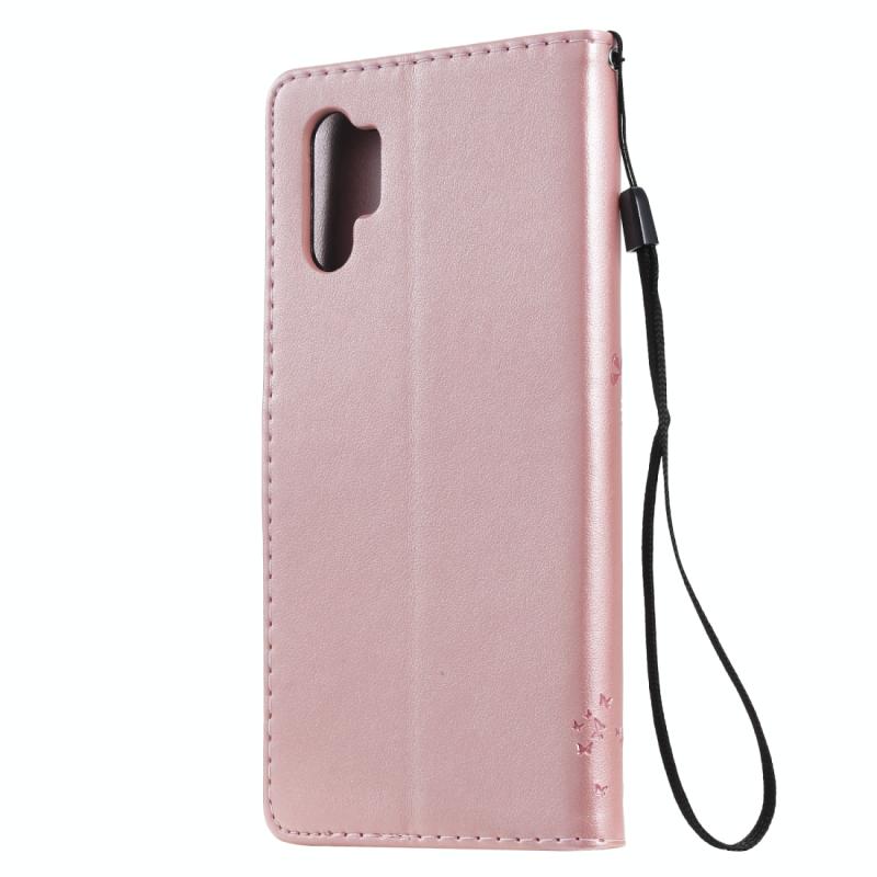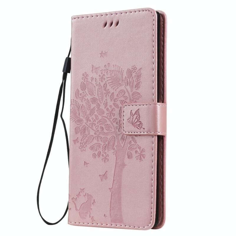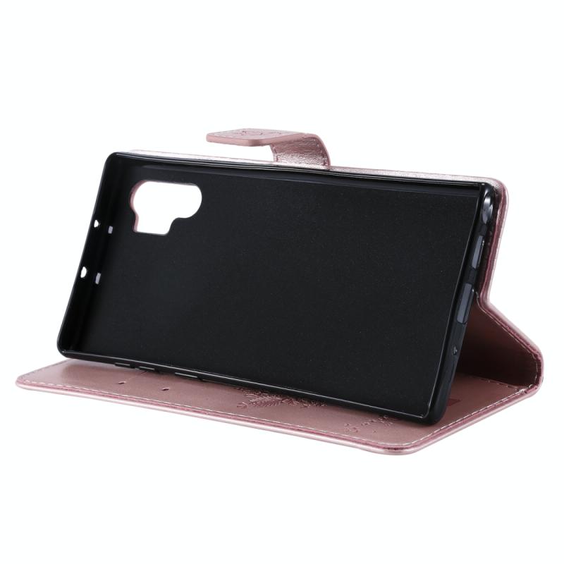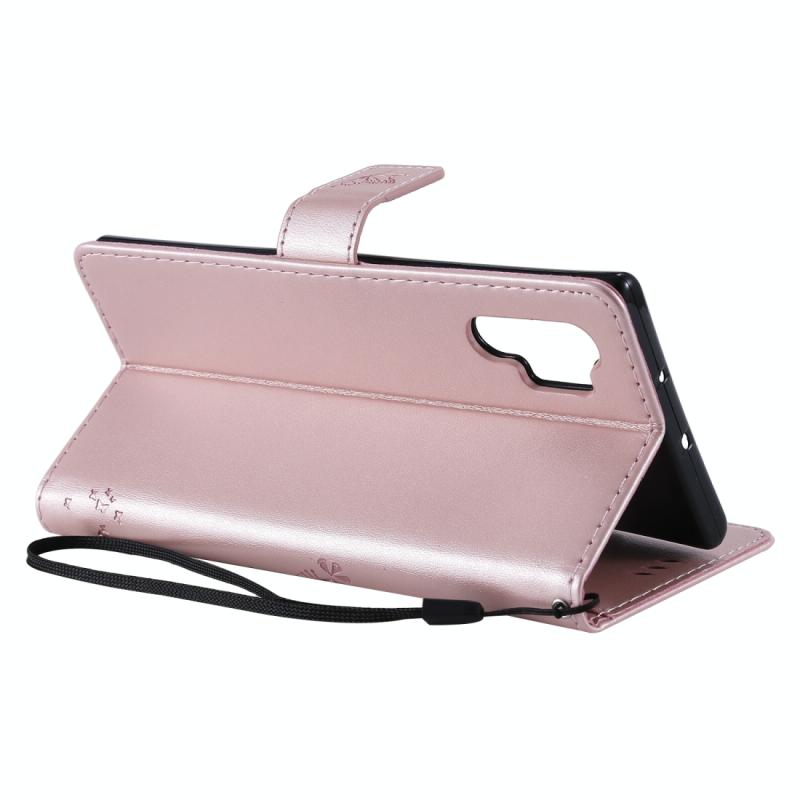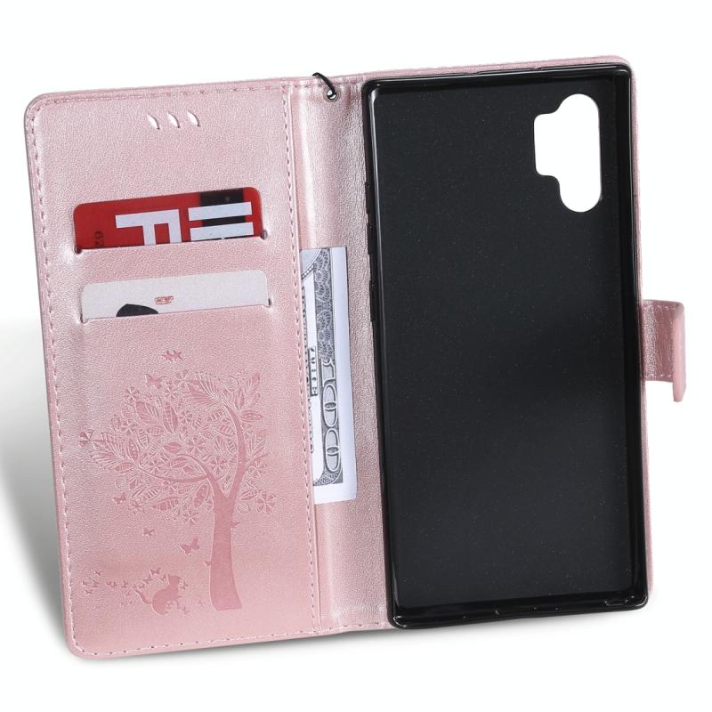 Tree & Cat Pattern Pressed Printing Horizontal Flip PU Leather Case with Holder & Card Slots & Wallet & Lanyard For Galaxy Note 10+ / 10 Pro(Rose Gold)