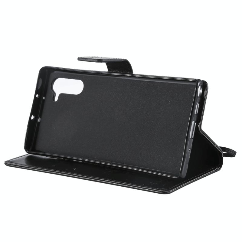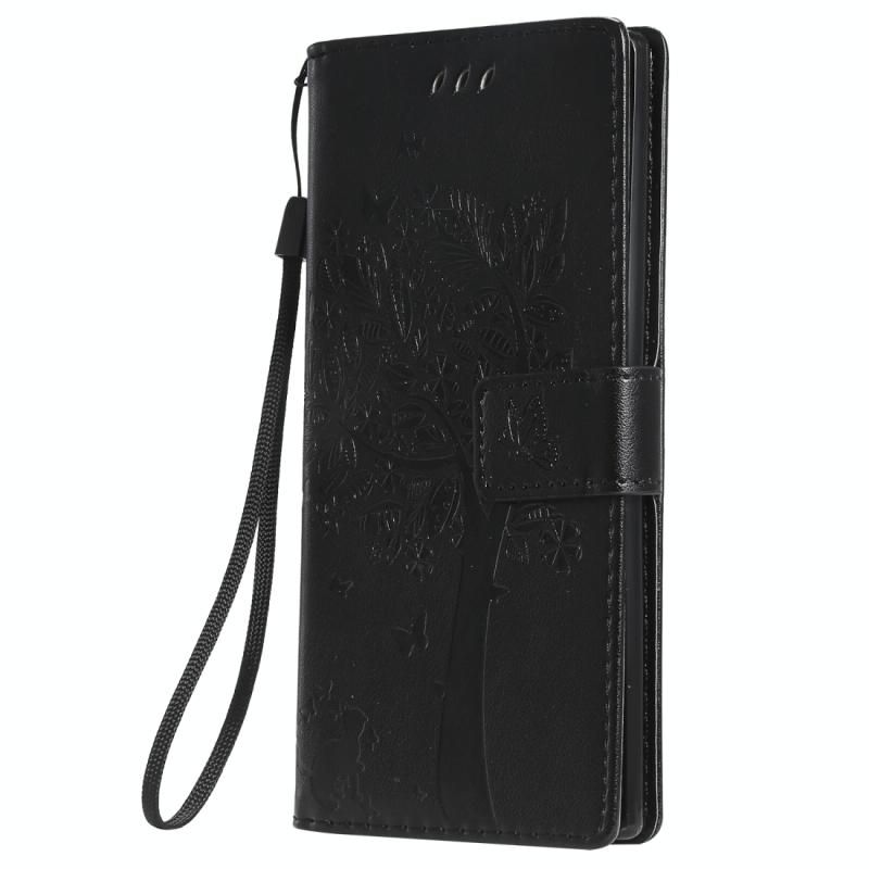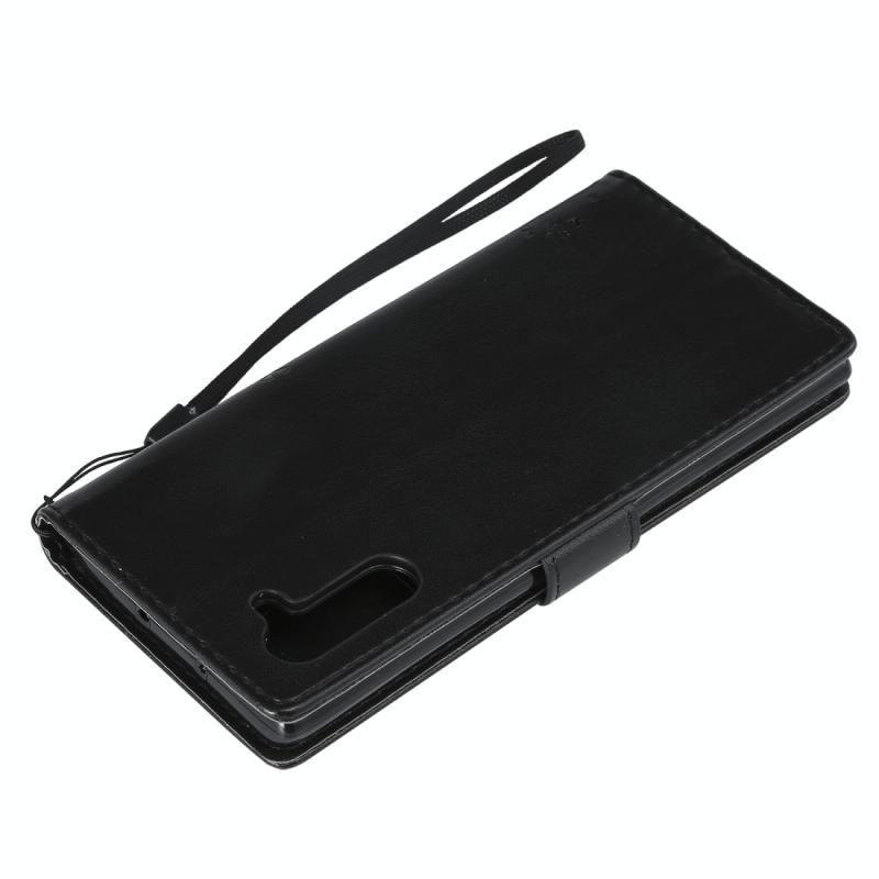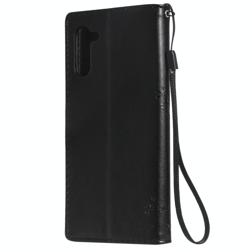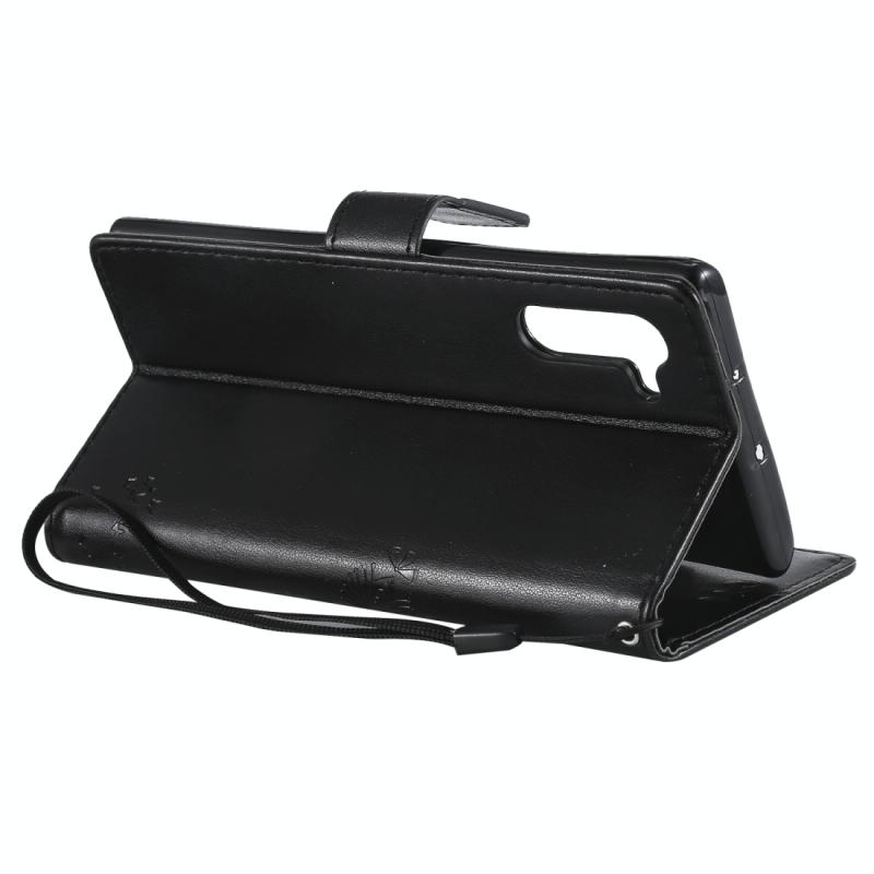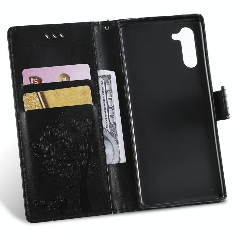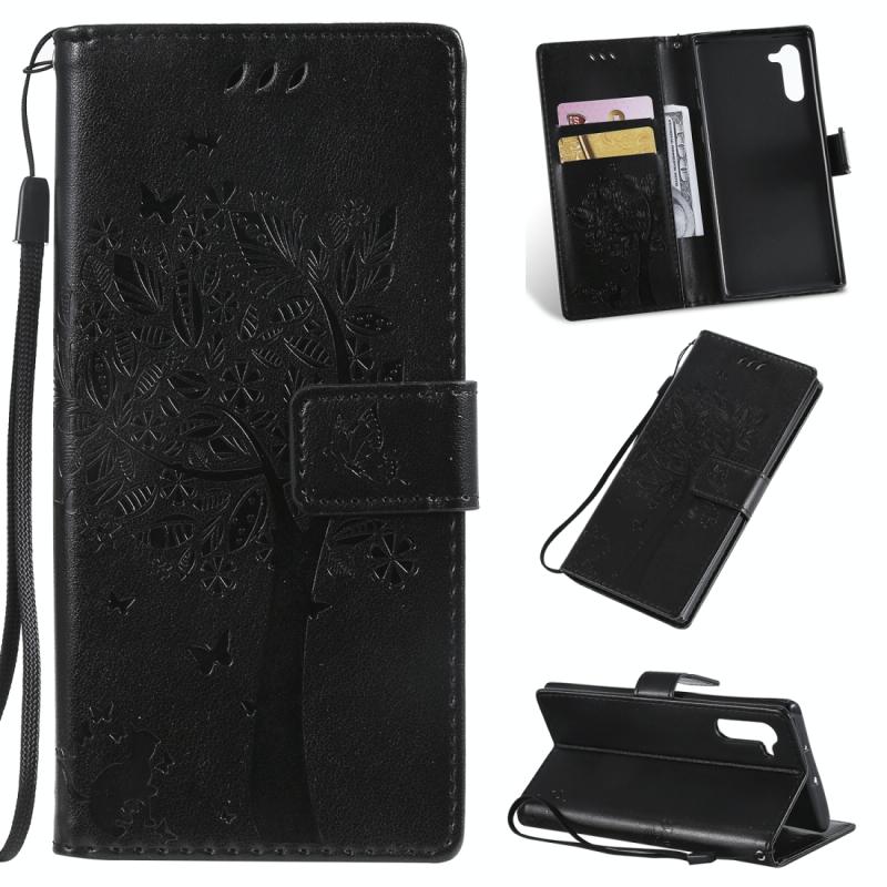 Θήκη δερμάτινη PU με σχέδιο δέντρου & γάτας, με εκτύπωση, οριζόντιο άνοιγμα, βάση στήριξης, θήκες για κάρτες, πορτοφόλι & λουρί για Galaxy Note10 (Μαύρο)