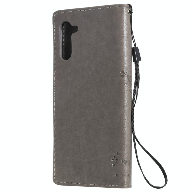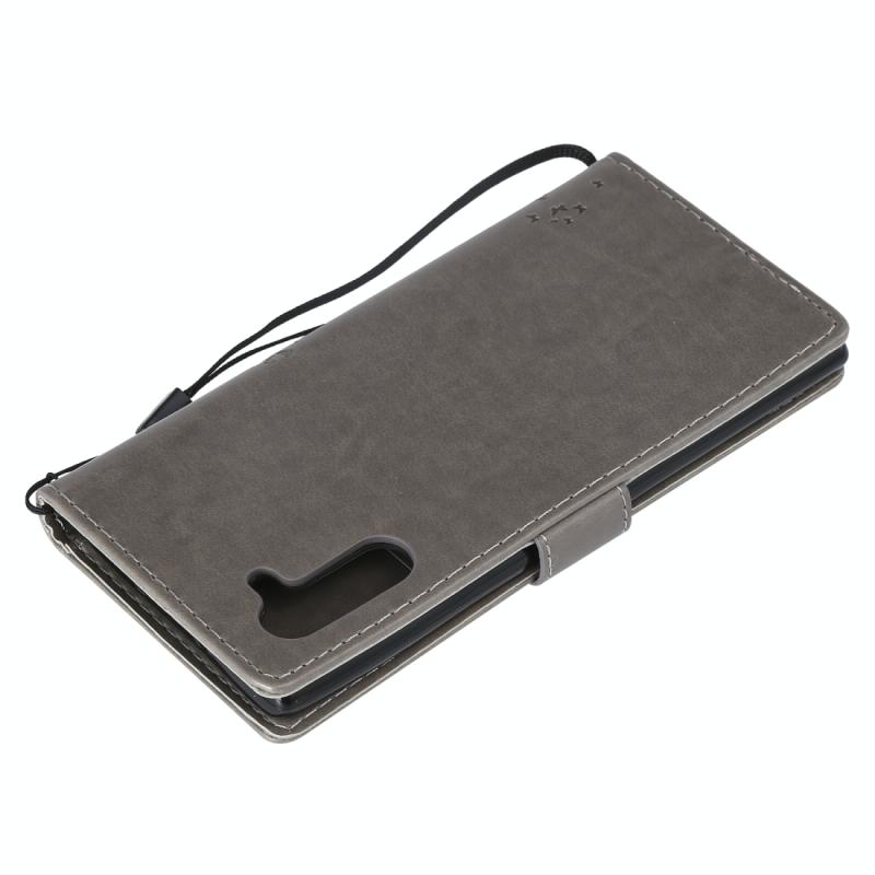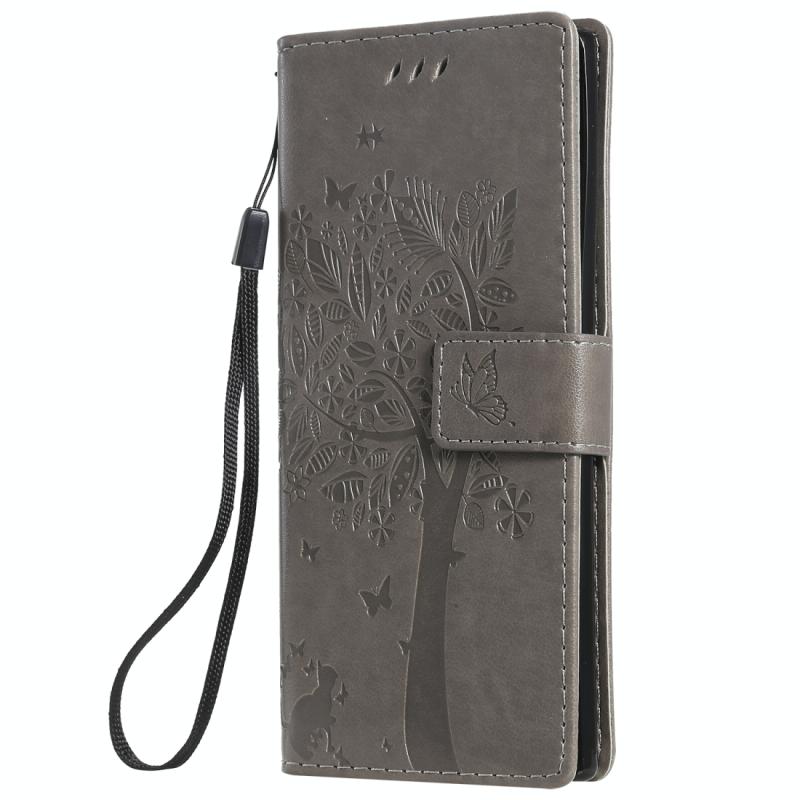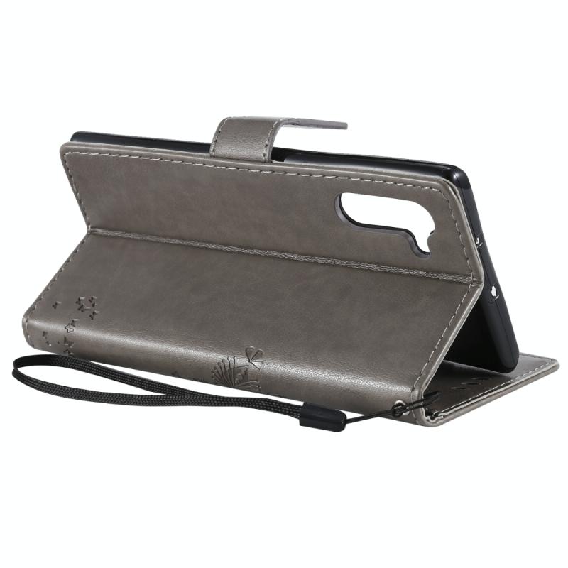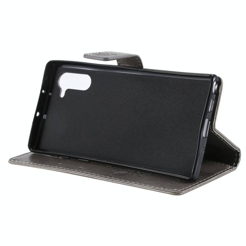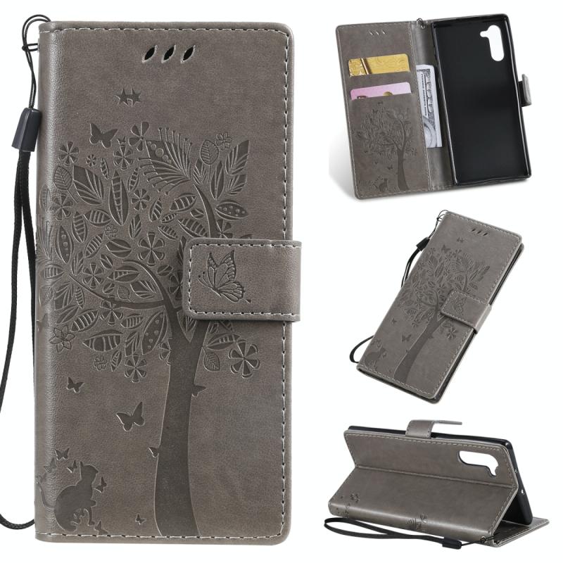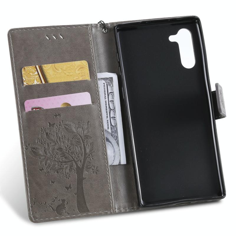 Θήκη δερμάτινη PU με σχέδιο δέντρου & γάτας, με εκτύπωση, οριζόντιο άνοιγμα, βάση στήριξης, θήκες για κάρτες, πορτοφόλι & λουρί για Galaxy Note10 (Γκρι)