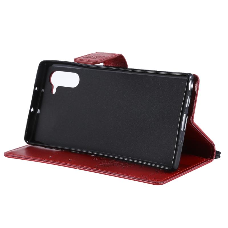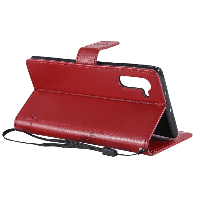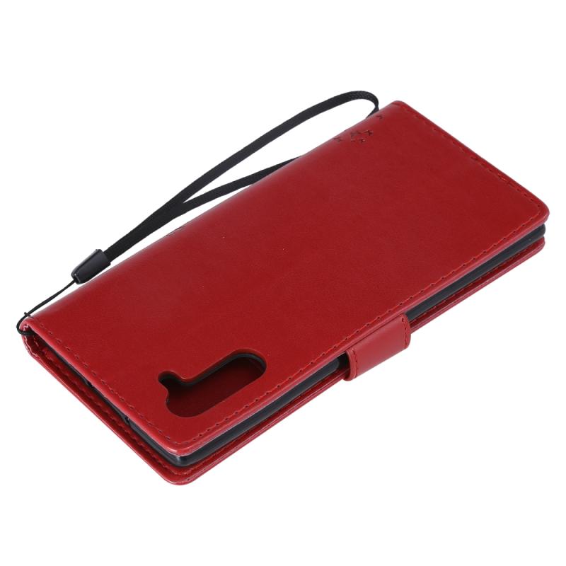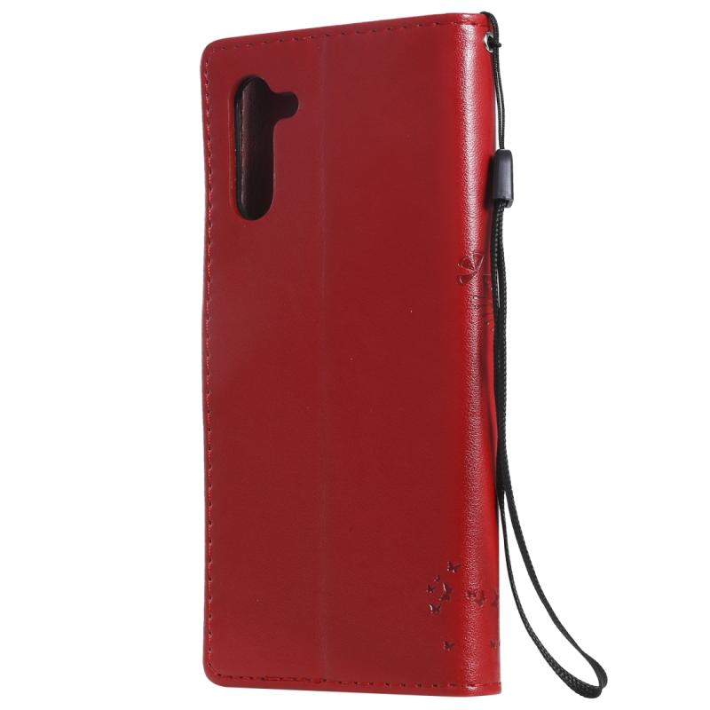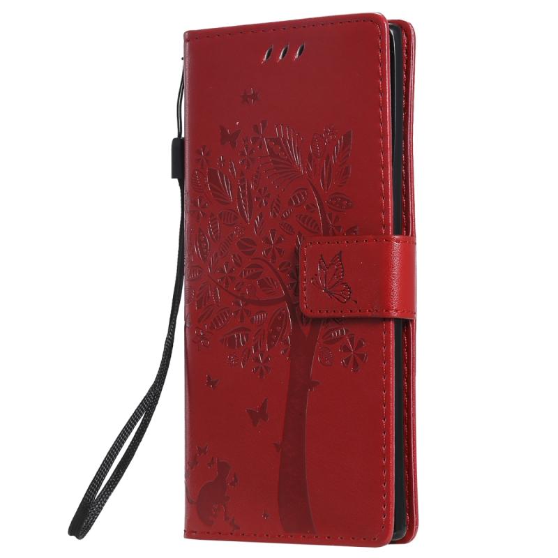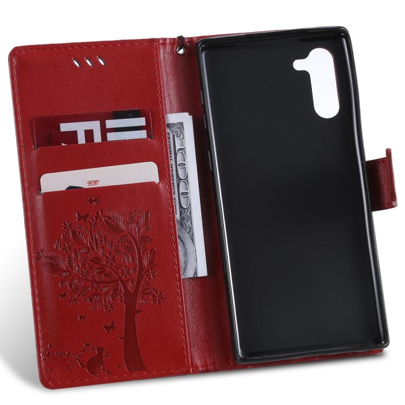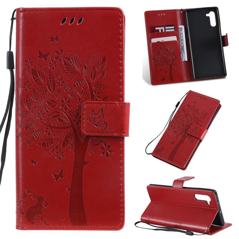 Θήκη δερμάτινη PU με σχέδιο δέντρου & γάτας, με εκτύπωση, οριζόντιο άνοιγμα, βάση στήριξης, θήκες για κάρτες, πορτοφόλι & λουρί για Galaxy Note10 (Κόκκινο)