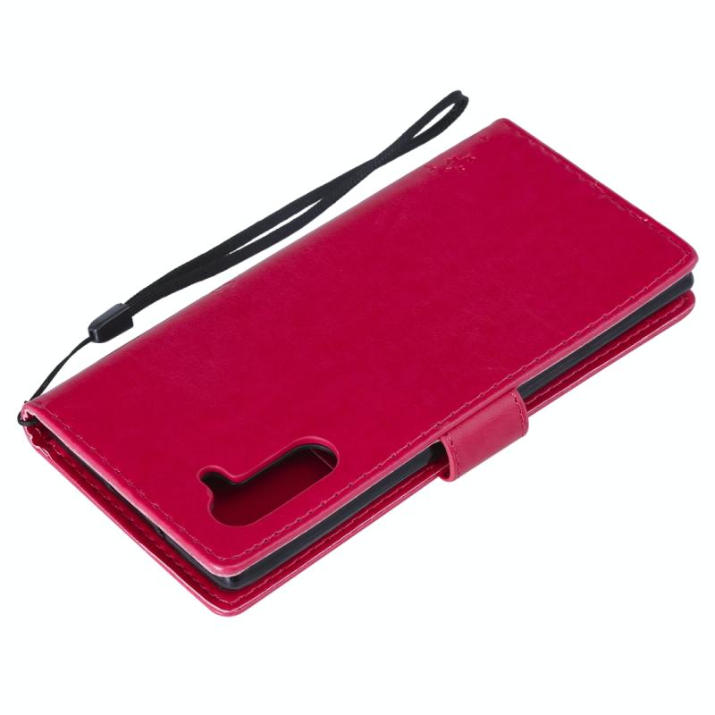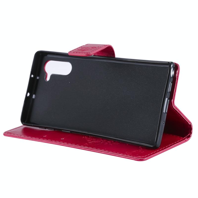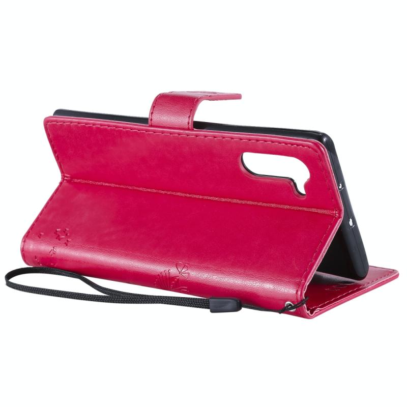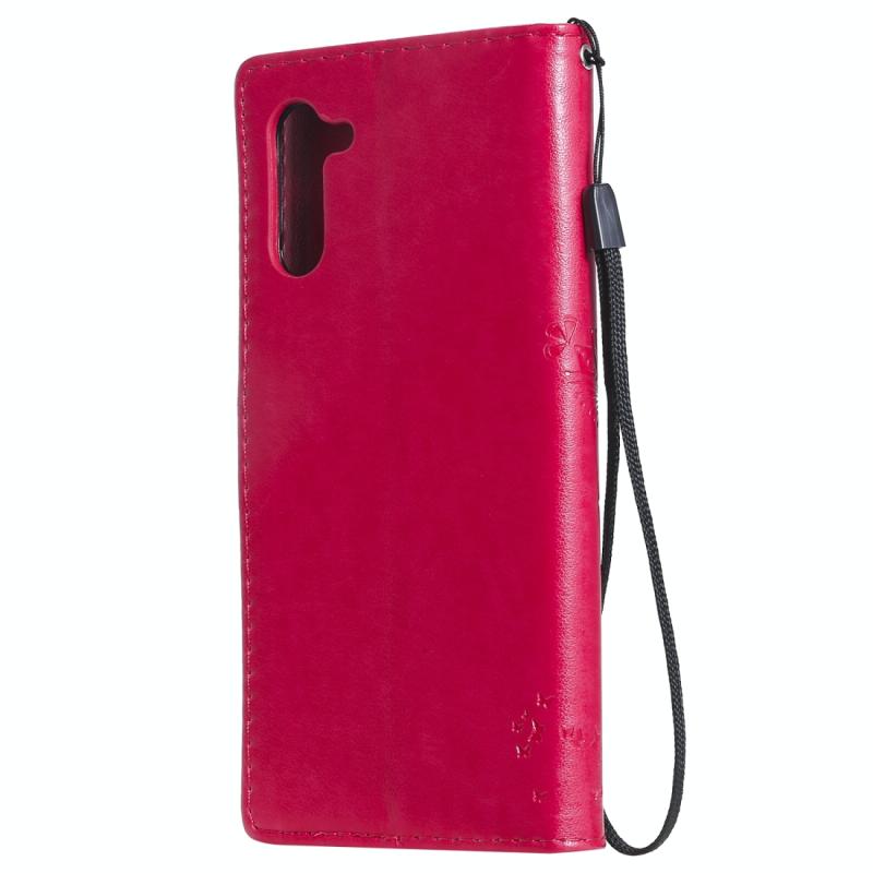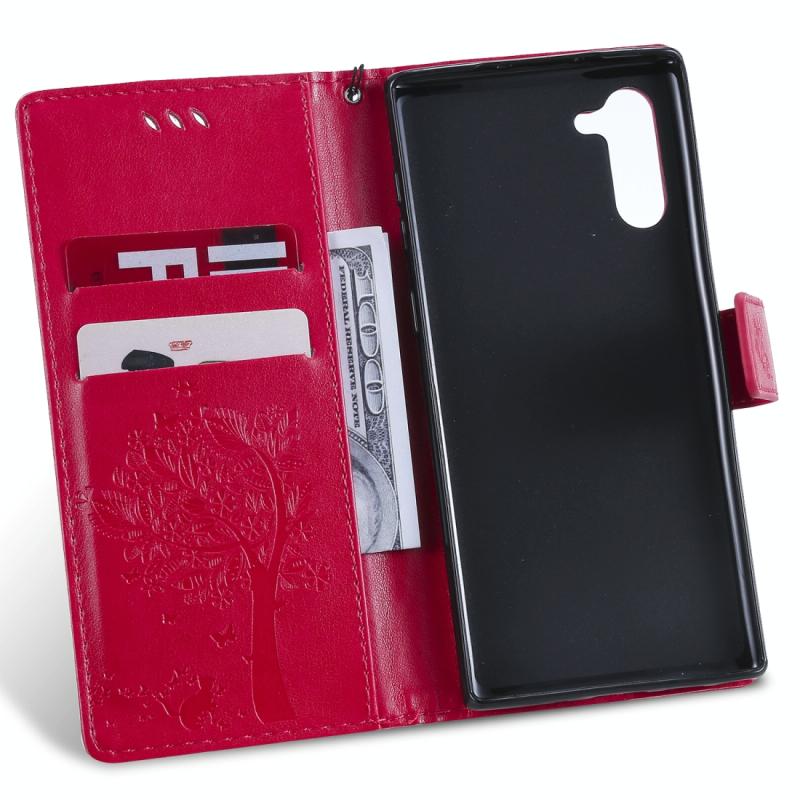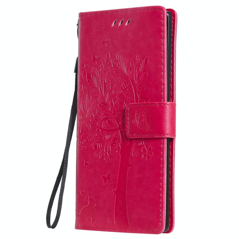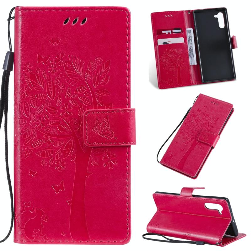 Θήκη δερμάτινη PU με σχέδιο δέντρου & γάτας, με εκτύπωση, οριζόντιο άνοιγμα, βάση στήριξης, θήκες για κάρτες, πορτοφόλι & λουρί για Galaxy Note10 (Ροζέ κόκκινο)